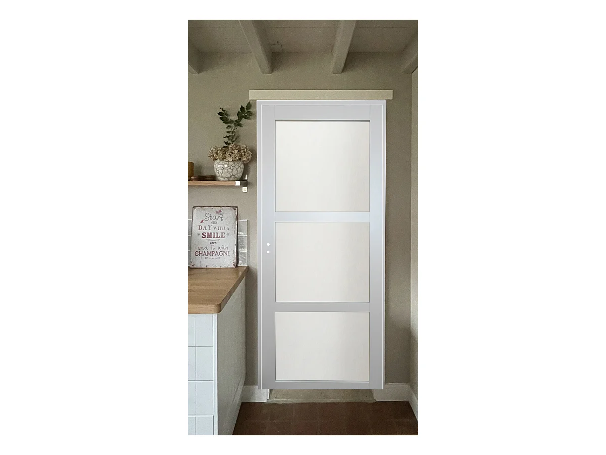 Bloc Porte Greyria Gris Clair Ral7035 Vitree H204 X L73 Poussant Droite Cotes Tableau +poignee Gd Menuiseries