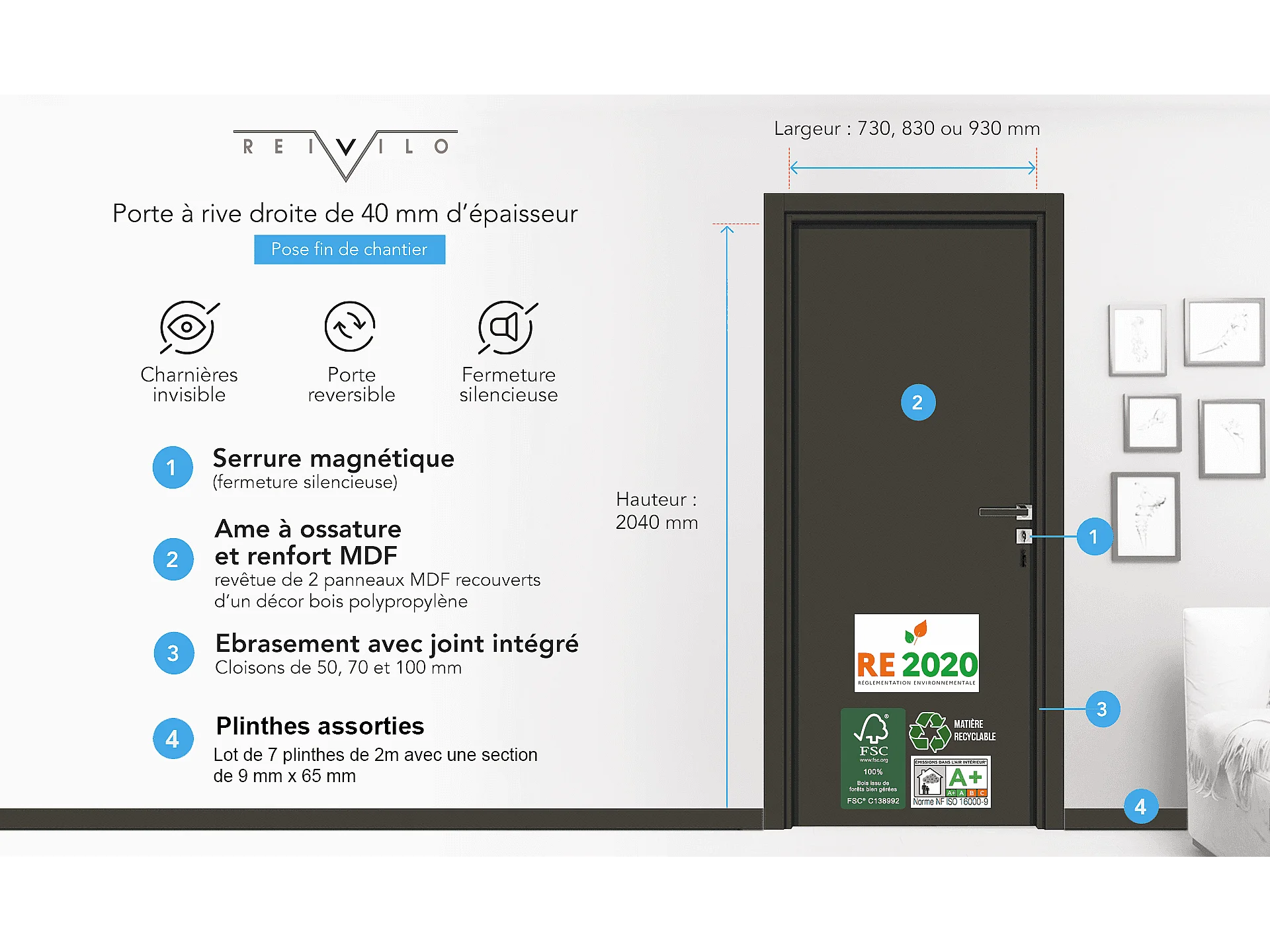Bloc-porte Miro avec poignée Exclusive grise, H.204 x l.63 cm, aspect textile perle