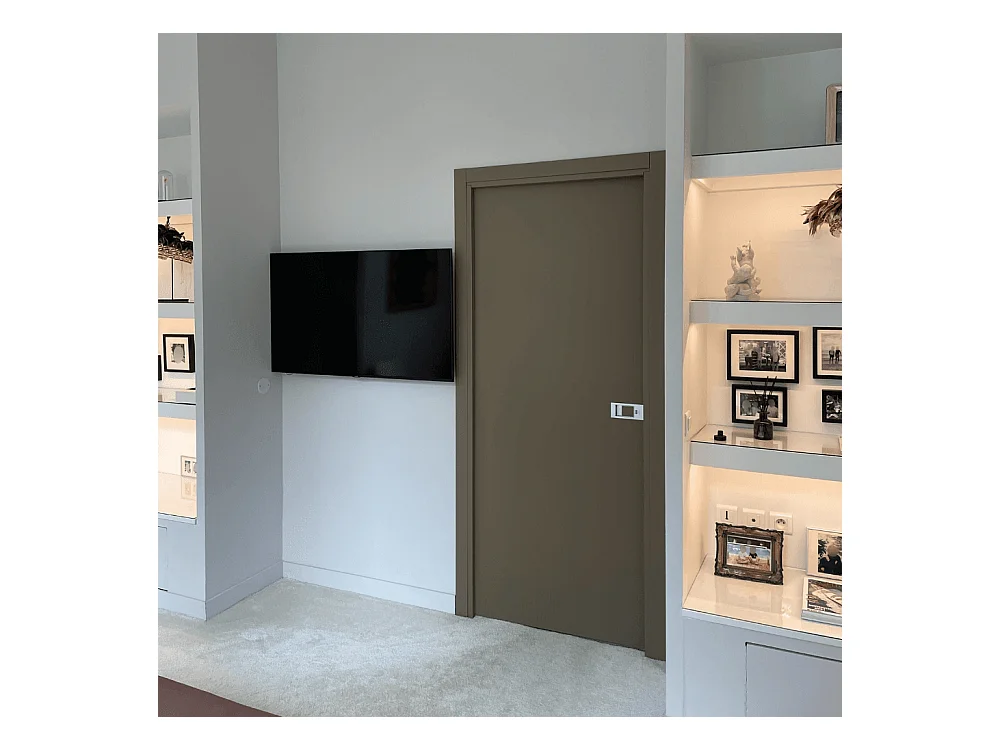 Bloc-porte Miro avec poignée Exclusive grise, H.204 x l.83 cm, aspect cuir lichen