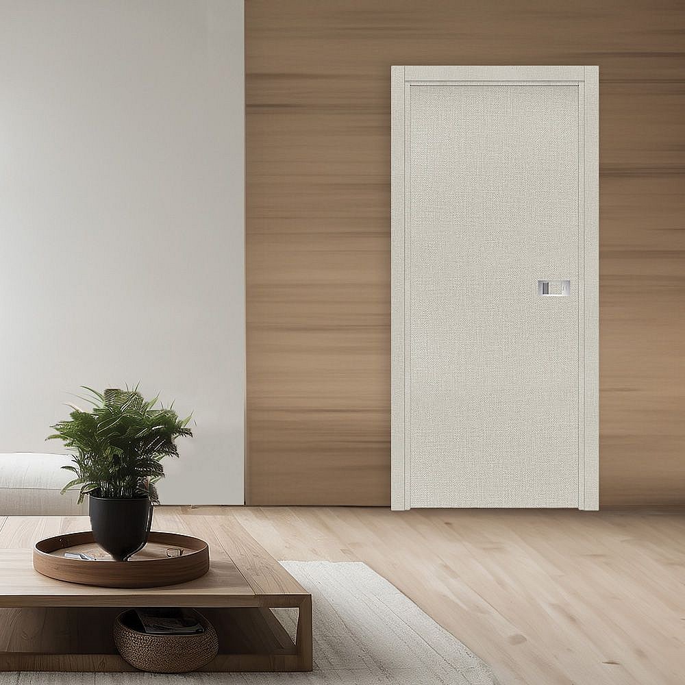 Bloc-porte Miro avec poignée Exclusive grise, H.204 x l.93 cm, aspect textile opale