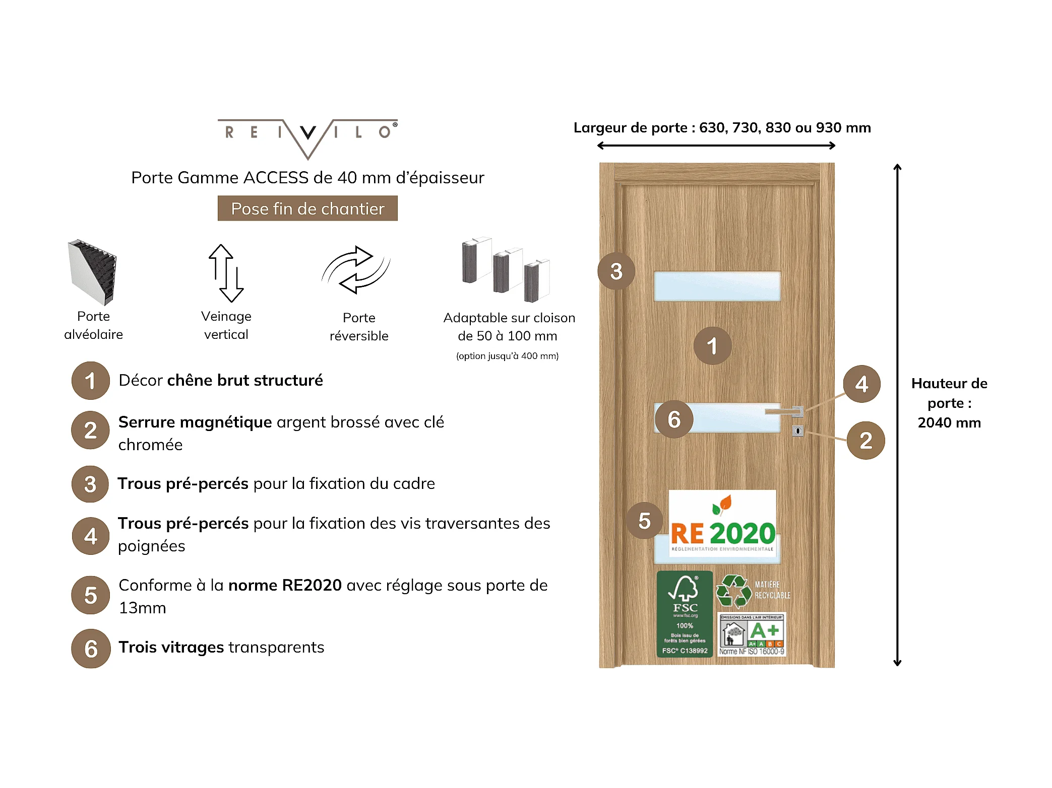 Bloc porte pose fin de chantier April , H.204 x l.73 cm