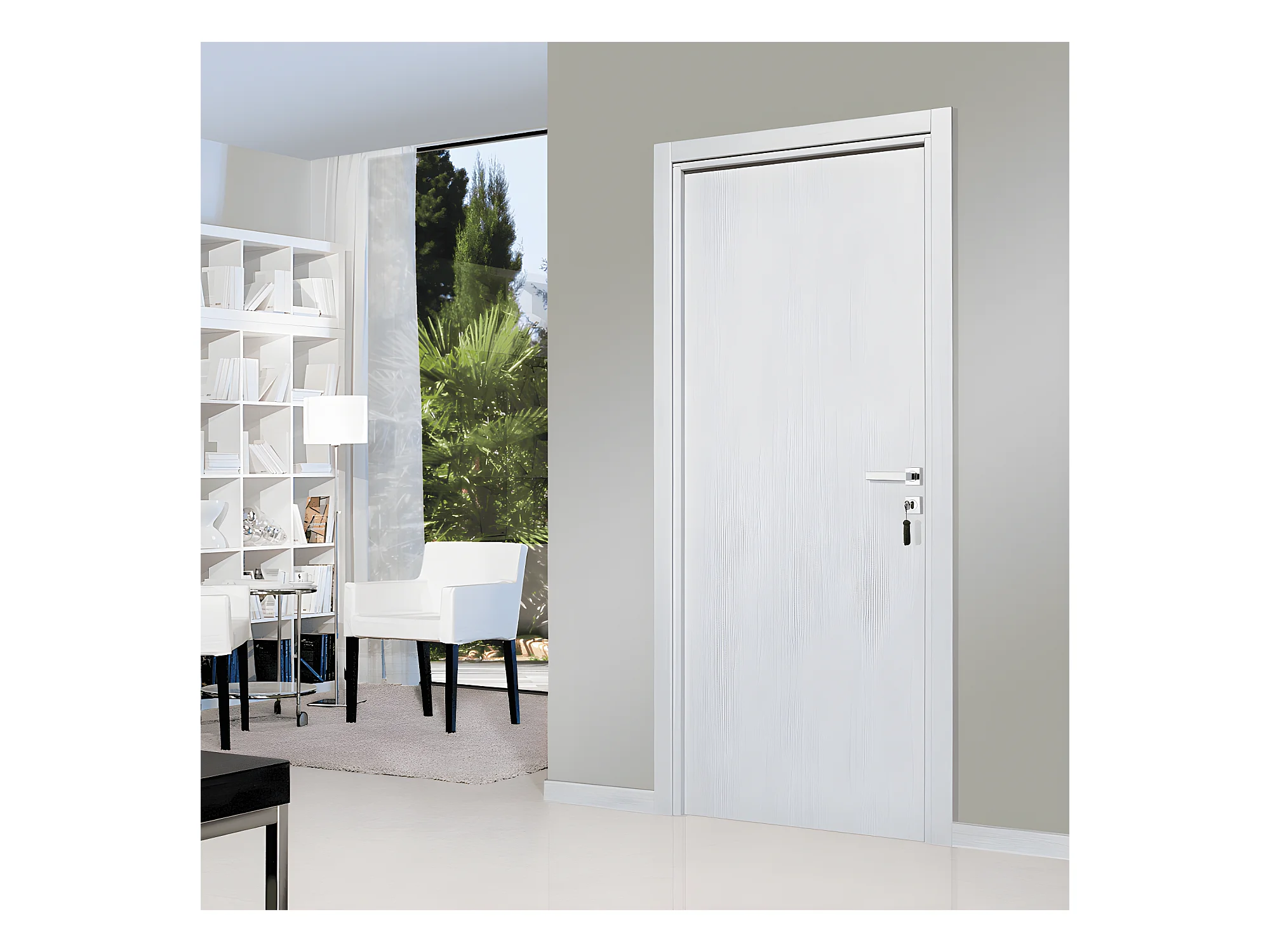 Bloc-porte pose fin de chantier collection Premium Miro, H.204 x l.93 cm, aspect chêne blanc, réversible