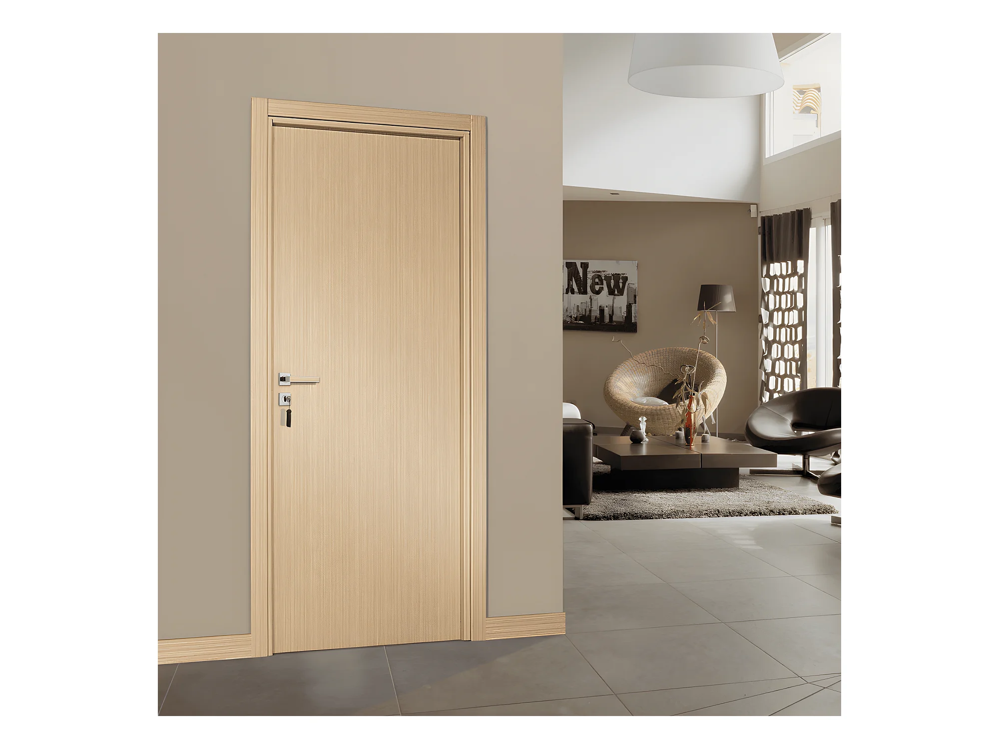 Bloc-porte pose fin de chantier collection Premium Miro, H.204 x l.93 cm, aspect chêne clair, réversible
