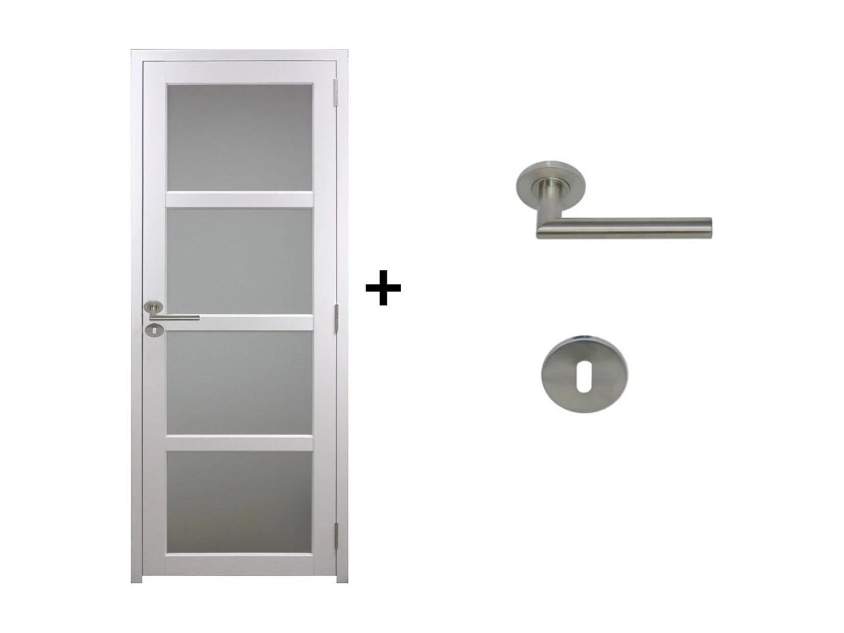 Bloc Porte Tana Vitree Blanc H204 x L83 Poussant Gauche Cotes Tableau +Poignee Pomerol