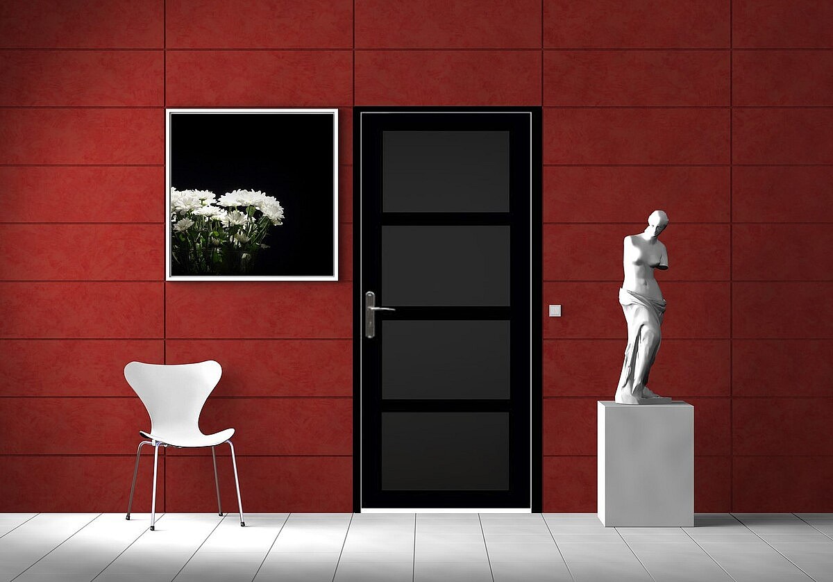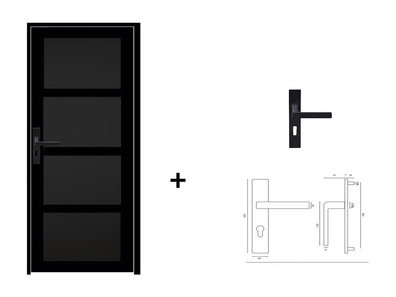 Bloc Porte Telia Noir 4 Panneaux H204 X L83 Poussant Droite Cotes Tableau +poignee Gd Menuiseries