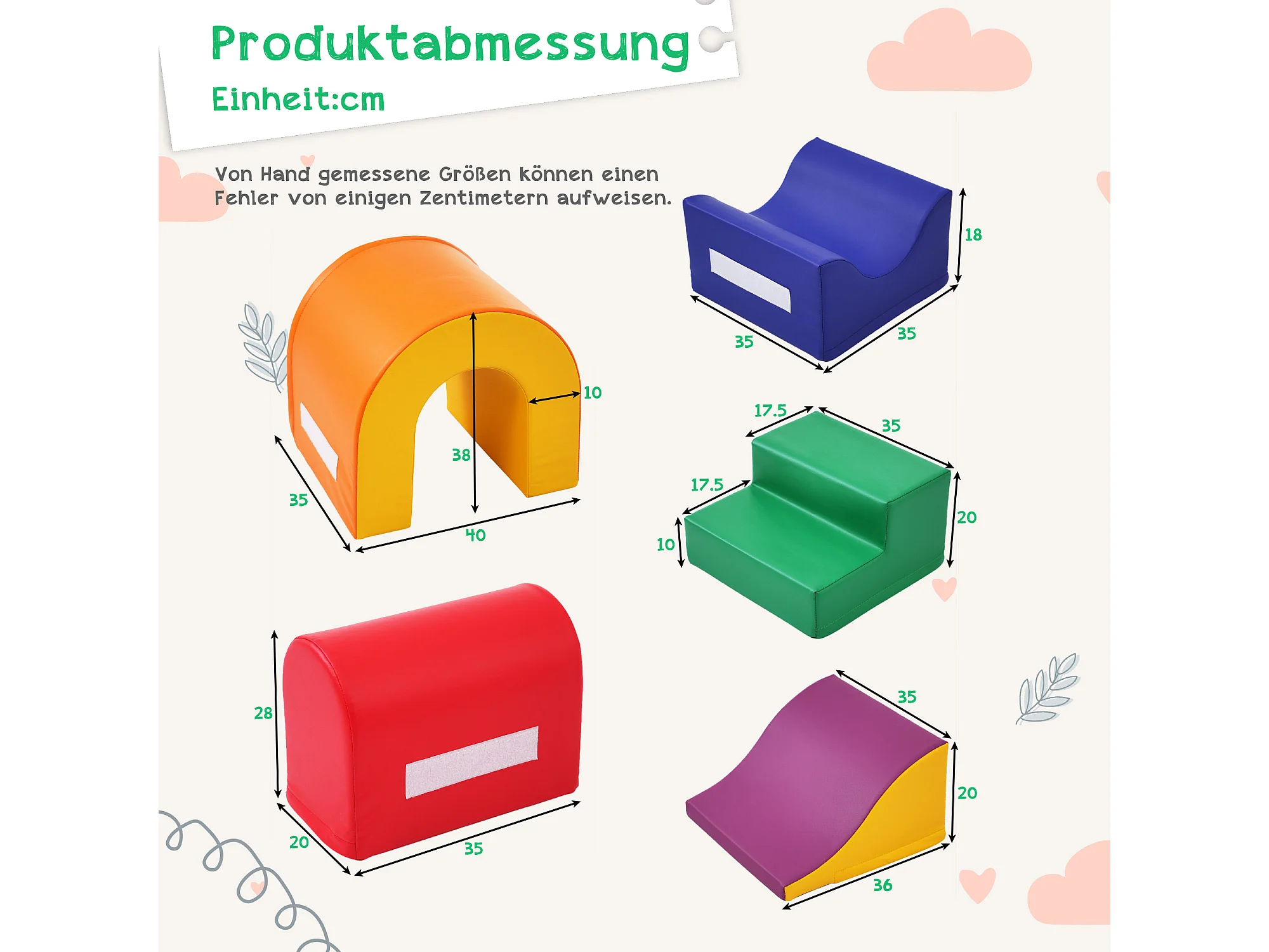 Jeu de construction en mousse 5 pièces, 5-en-1 modulable, liens à scratch, housse zippée, PU orange