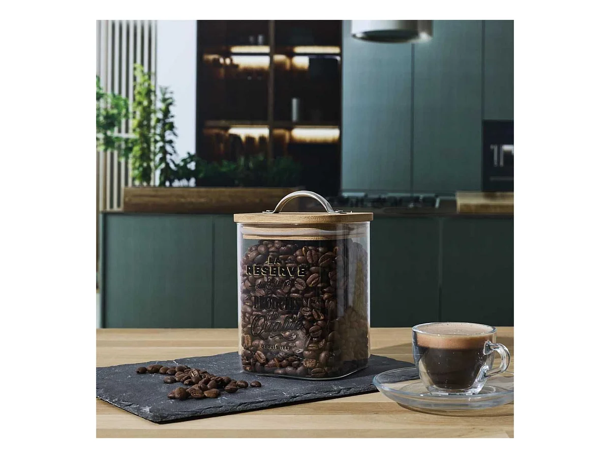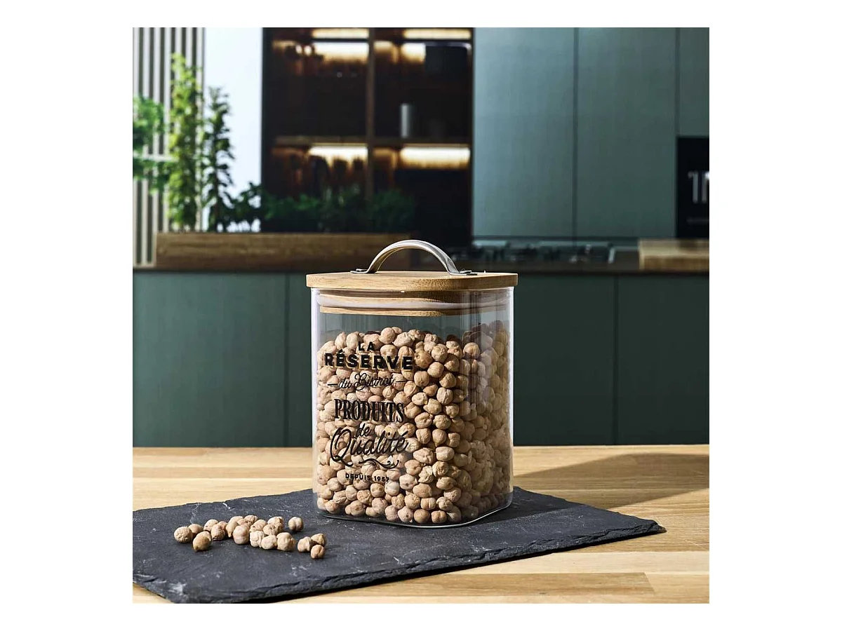 Bocal de 70cl en verre avec couvercle en bambou style bistrot