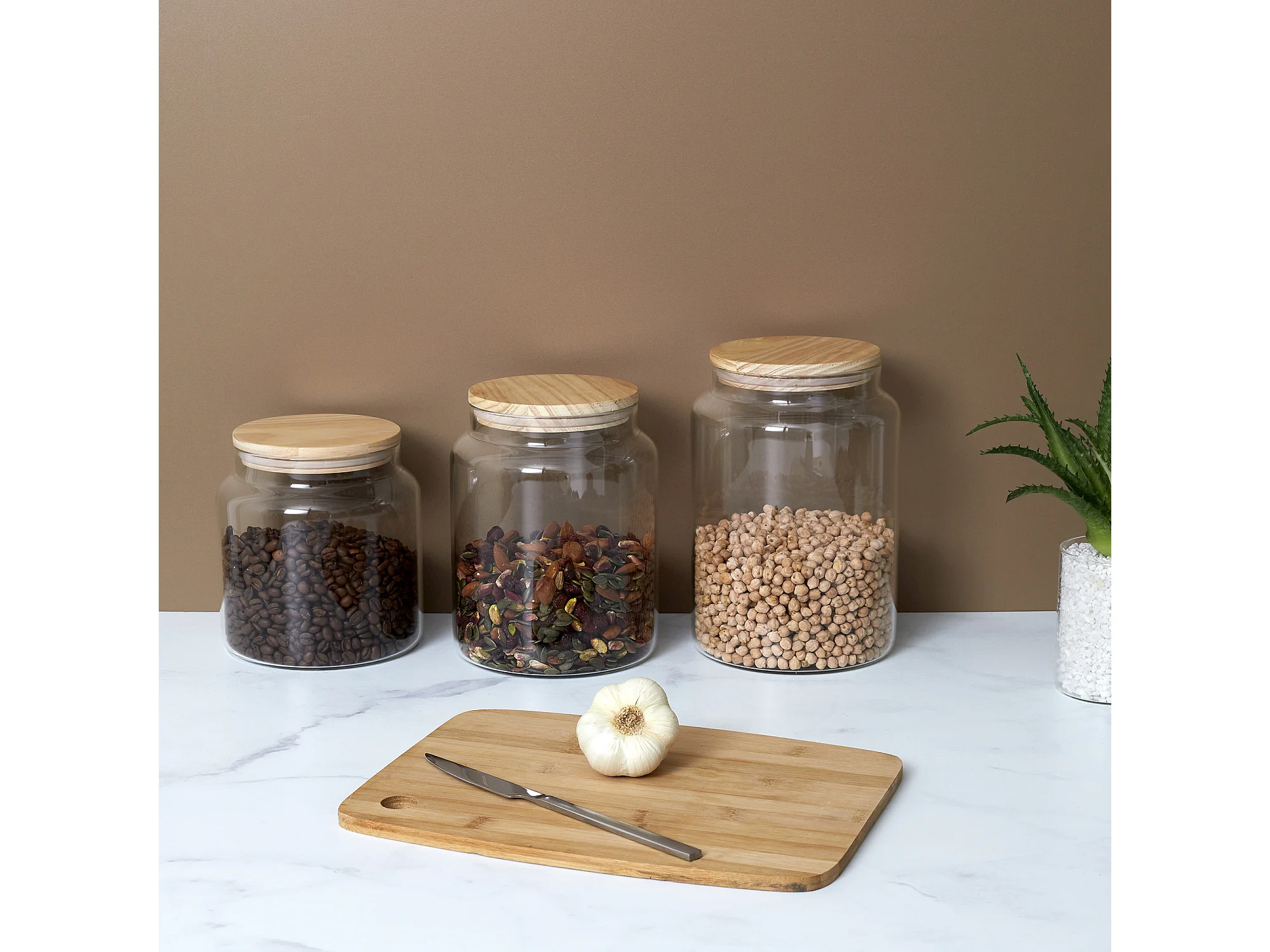 Bocal De Conservation Verre Couvercle Bois 2.4l Transparent, Marron