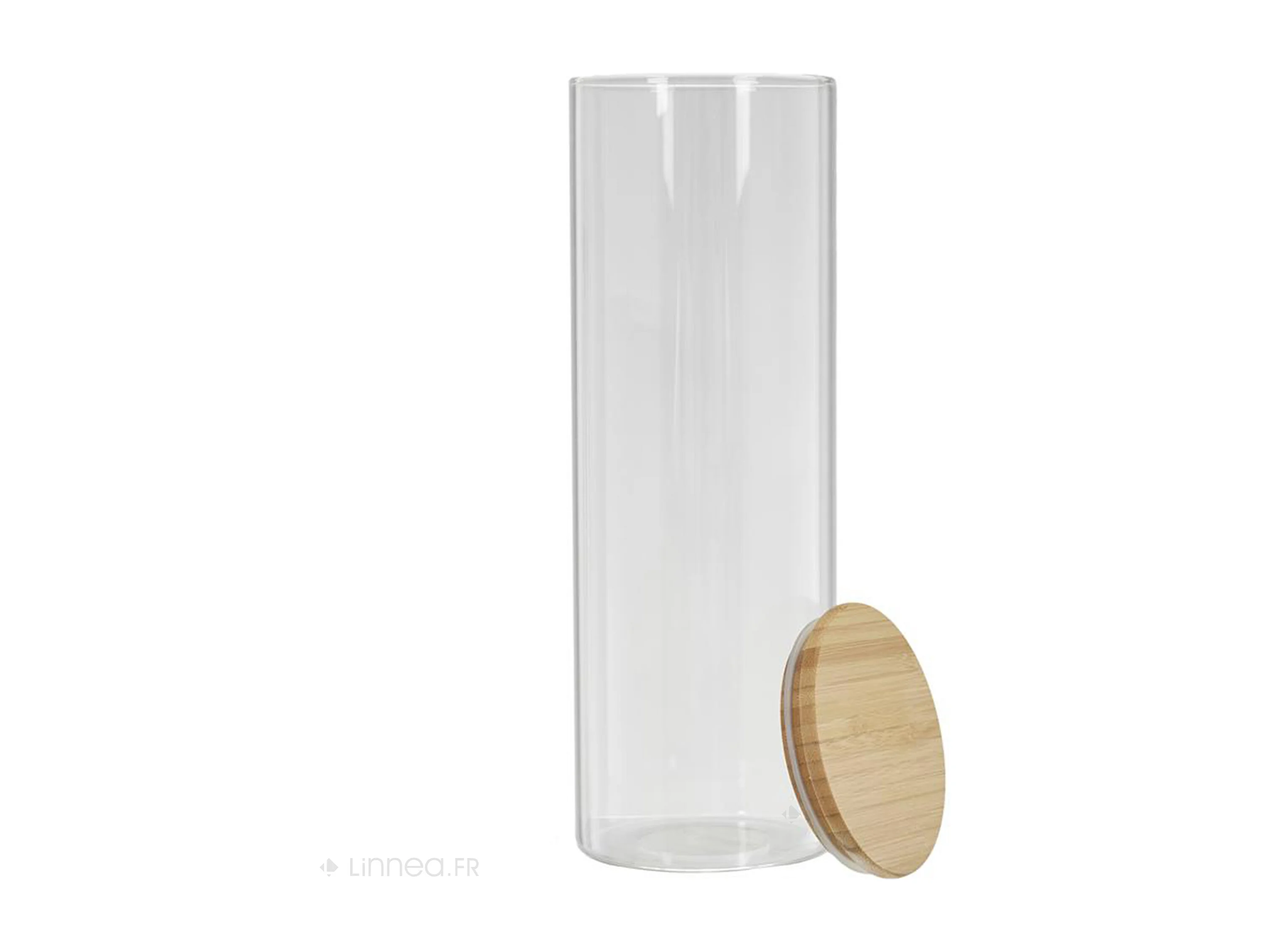 Bocal Verre Couvercle Acacia H 23cm Transparent, Marron