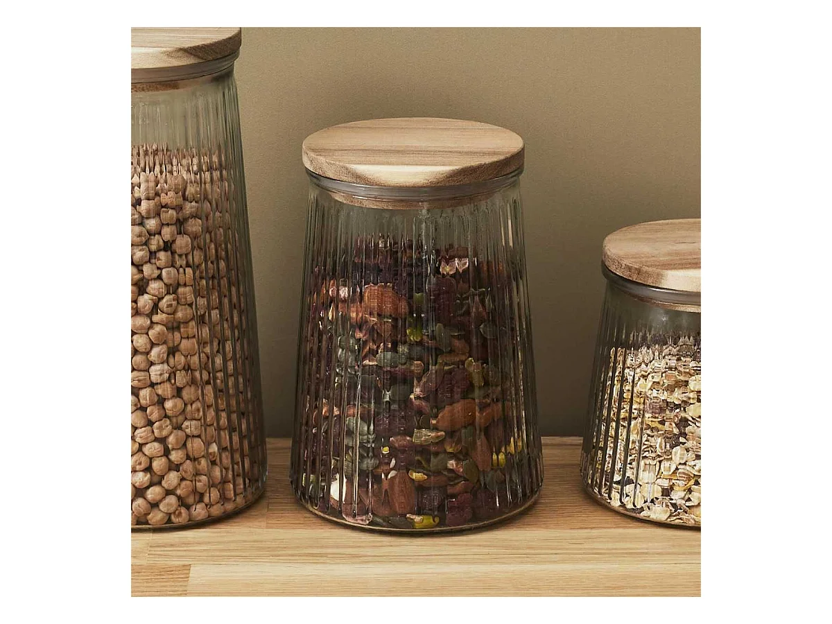 Lot de 3 Bocaux de Conservation Rond Incliné 1,3L en Verre Couvercle Bois - PLAUZ