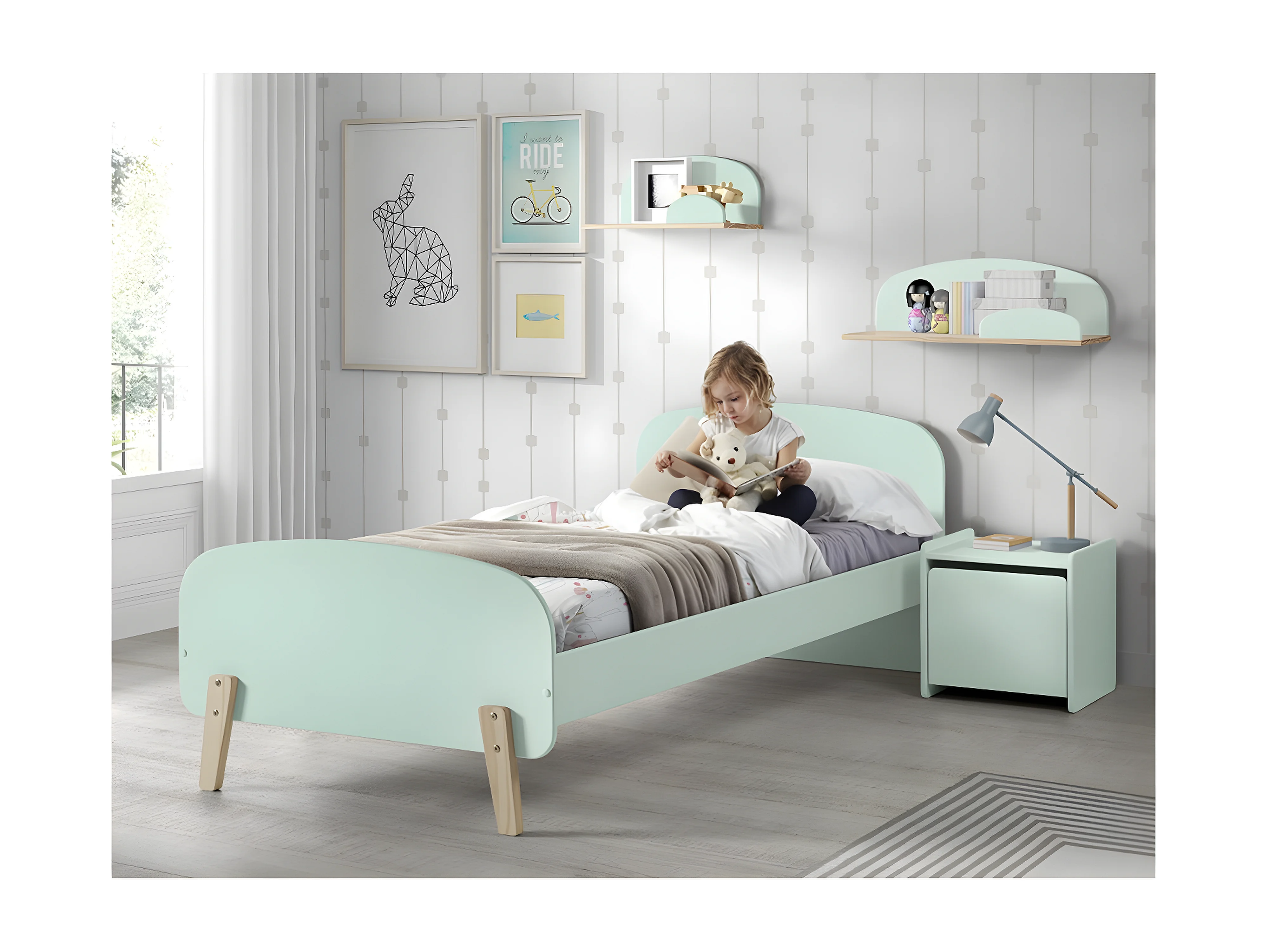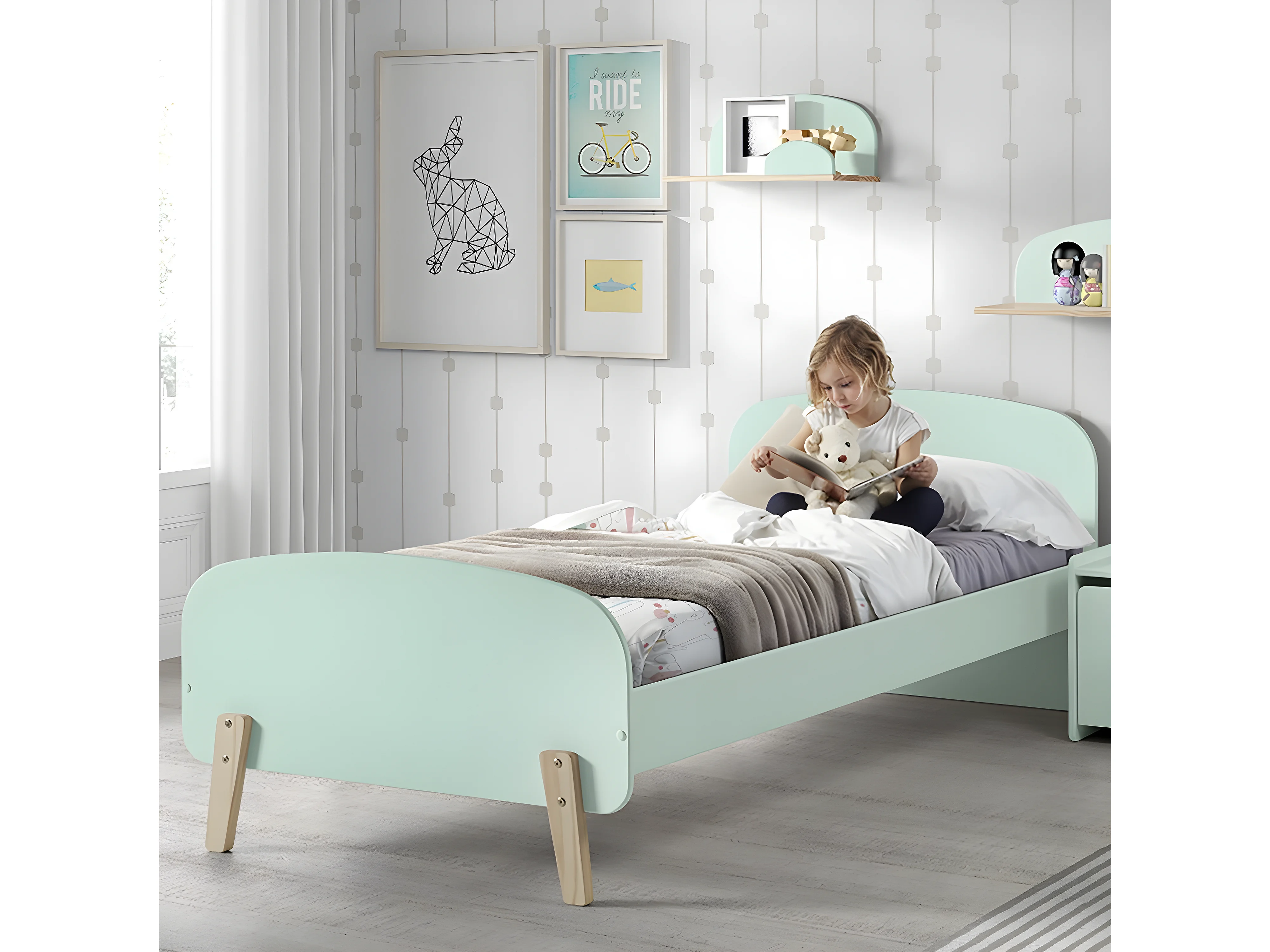 BODHI MINT - Lit 90x200cm Vert Menthe et Bois Sommier Intégré