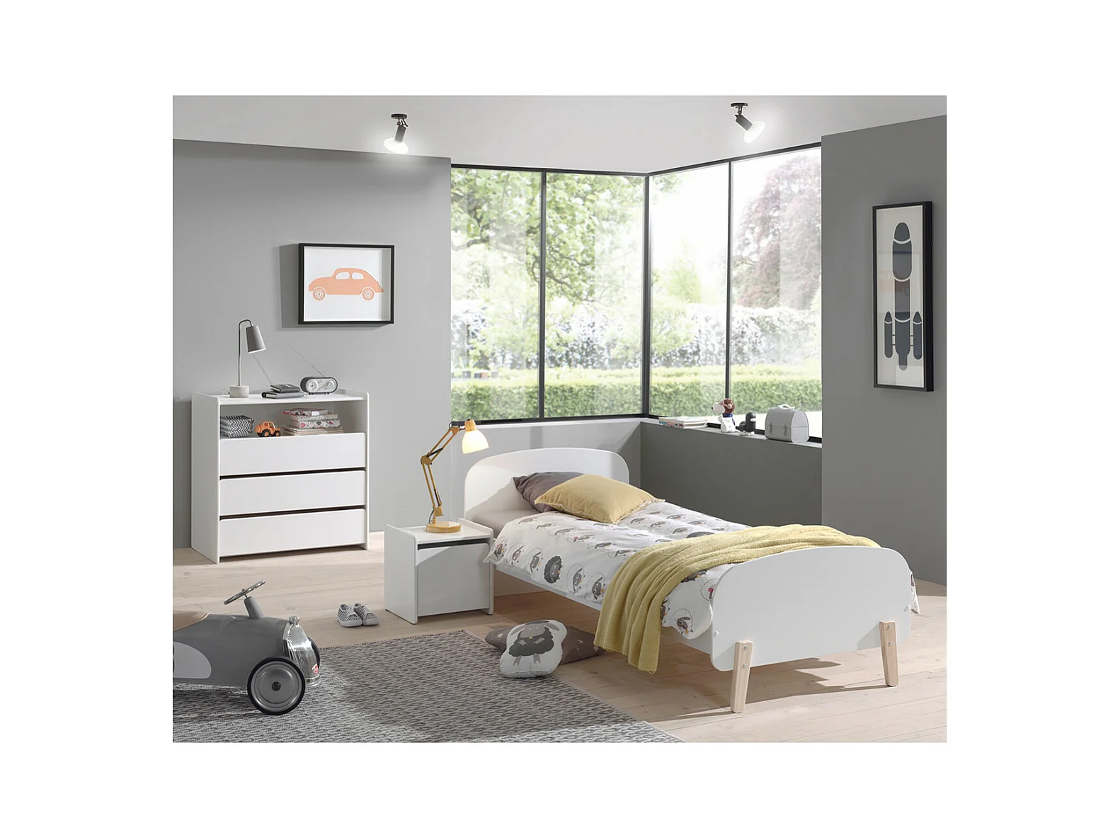 BODHI WHITE - Lit 90x200cm + Chevet + Commode