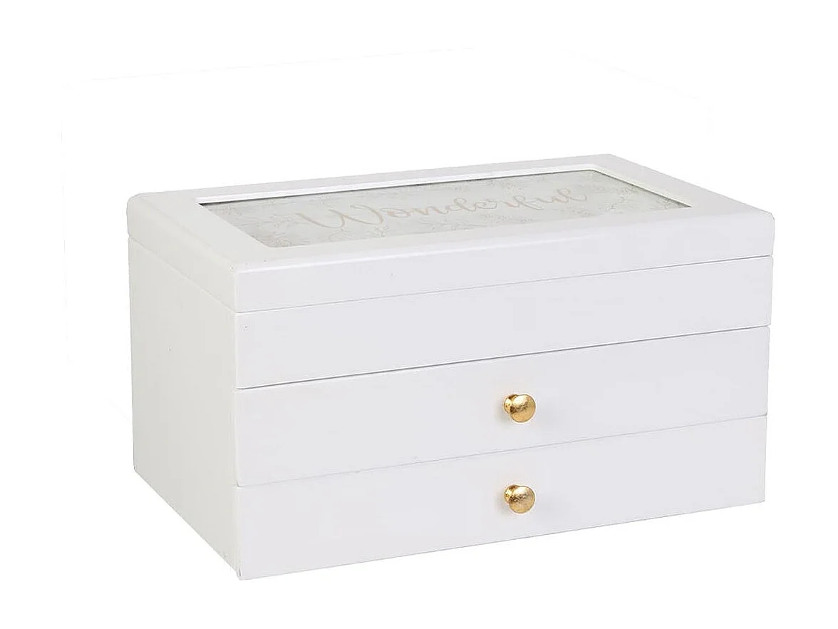 Boîte à Bijoux Vitrée 1 Tiroir "Charme" 25cm Blanc