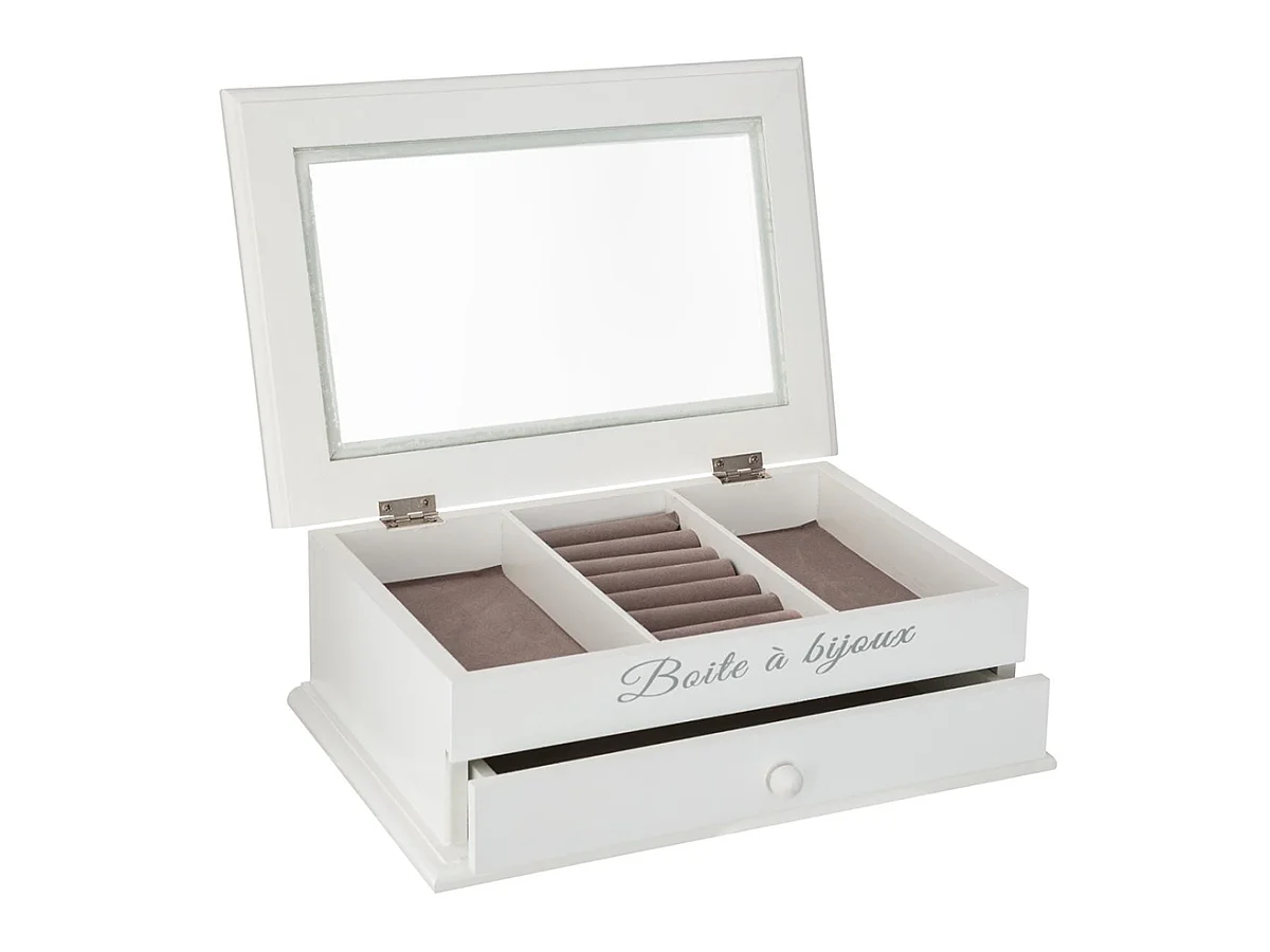 Boîte à Bijoux 2 Tiroirs avec Miroir - Blanc