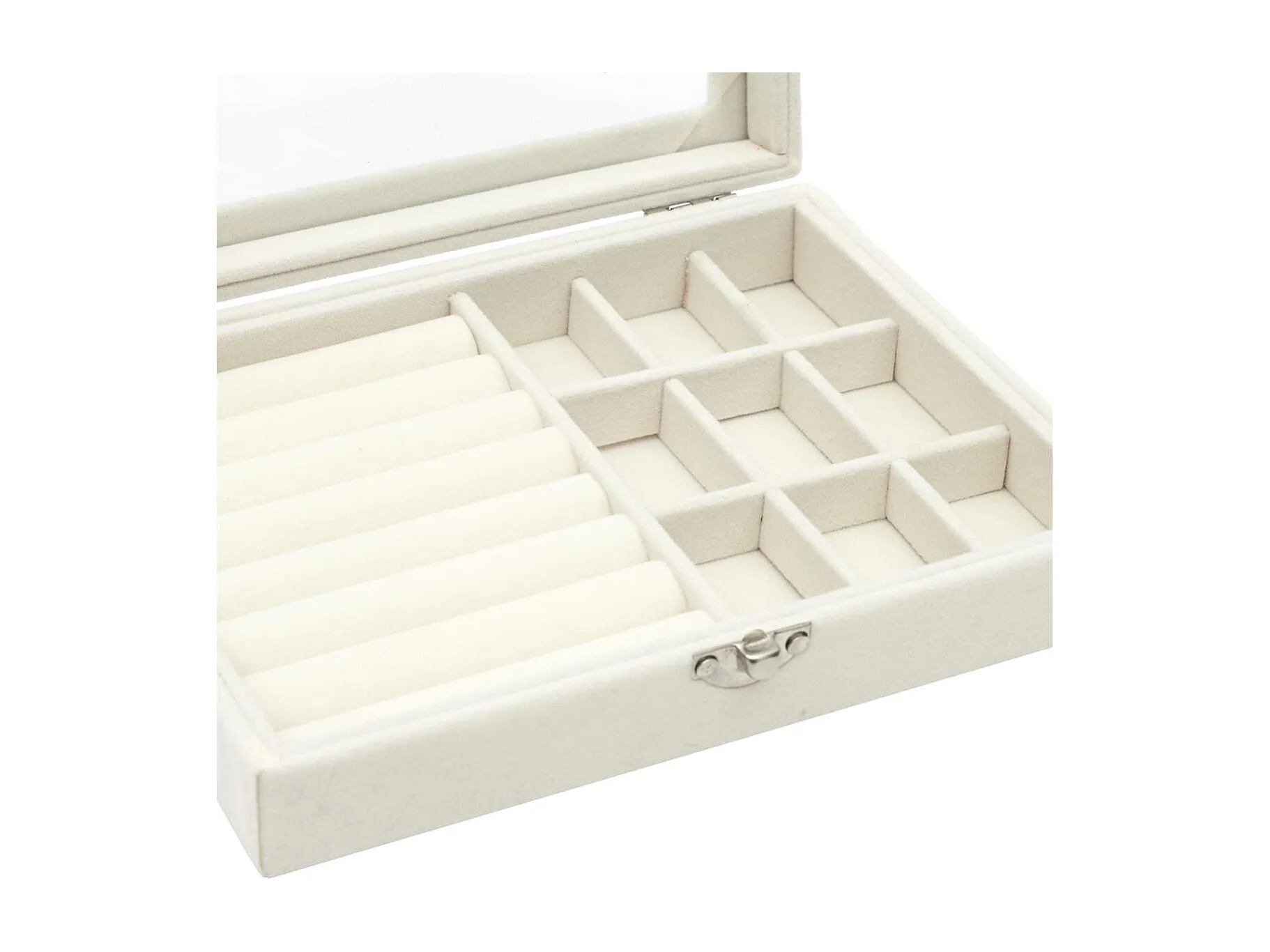 Boîte à bijoux crème intérieur feutrine et couvercle transparent