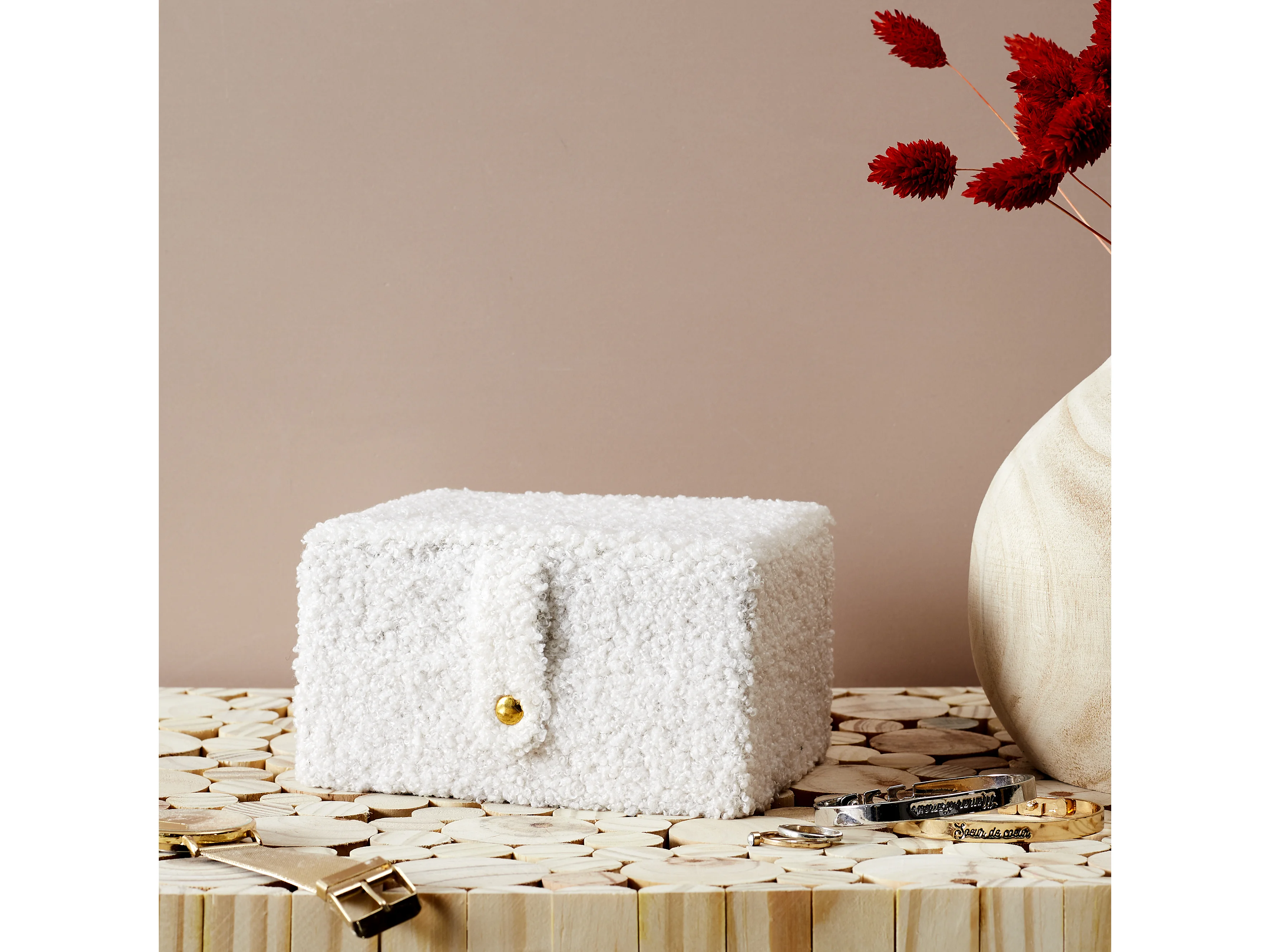 Porte-bijoux double en bouclette ivoire avec finitions dorées