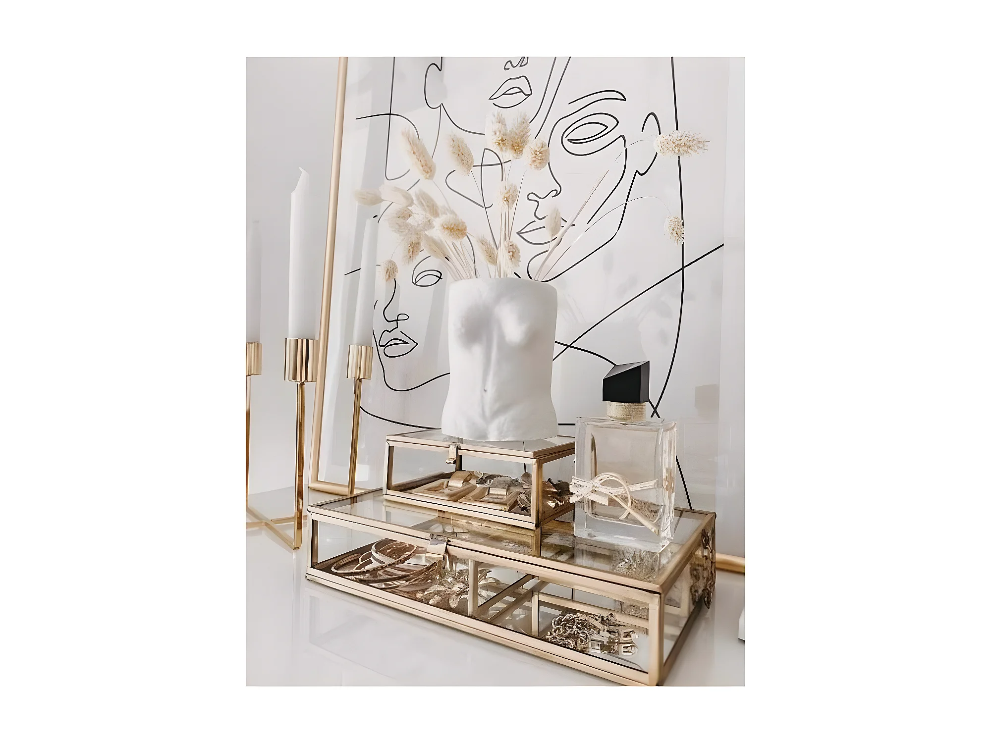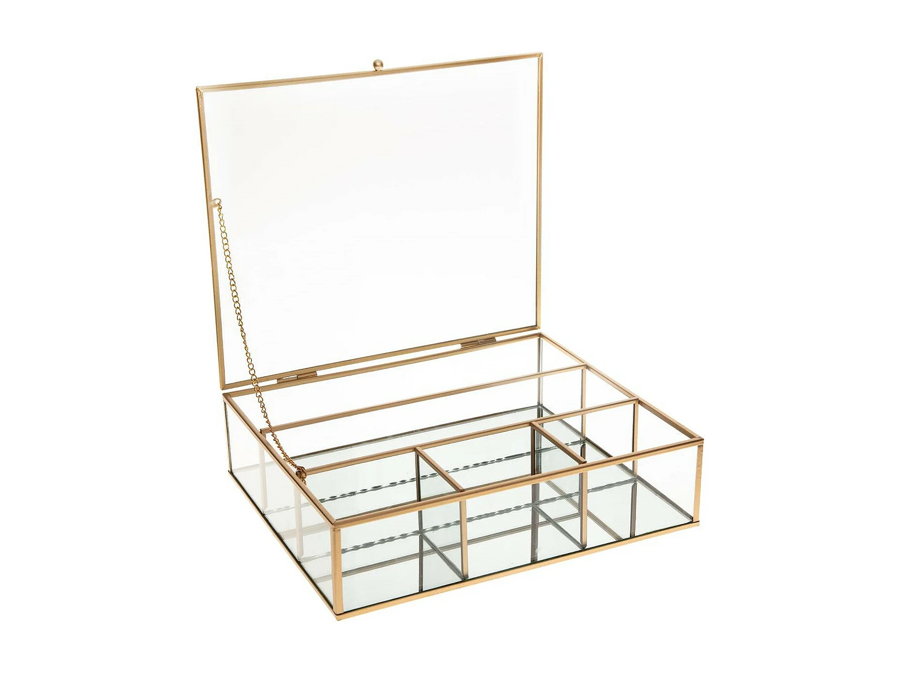 Boite à Bijoux carrée Dorée en Verre et Velours 20 x 20 cm