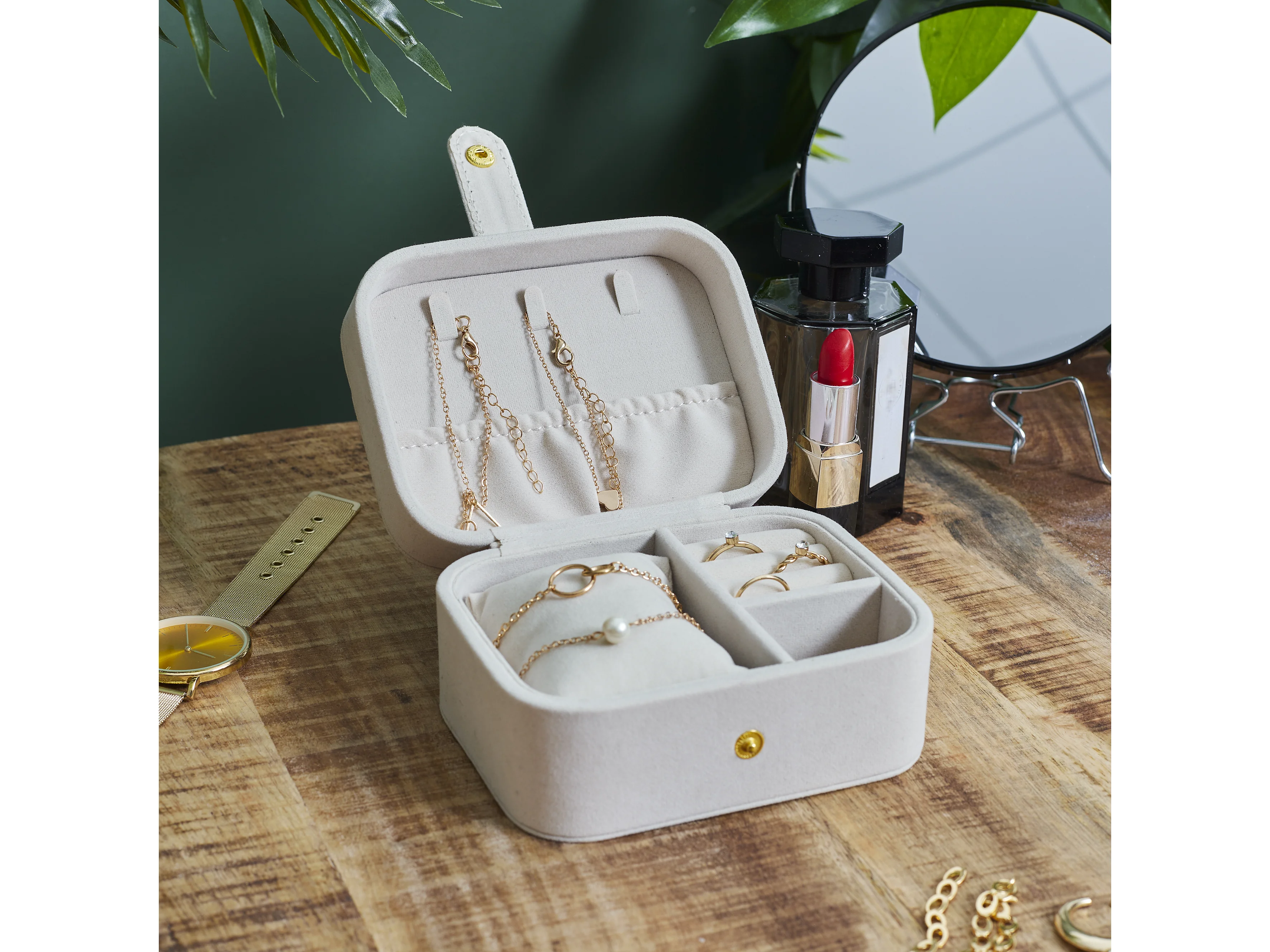 Porte-bijoux double en bouclette ivoire avec finitions dorées