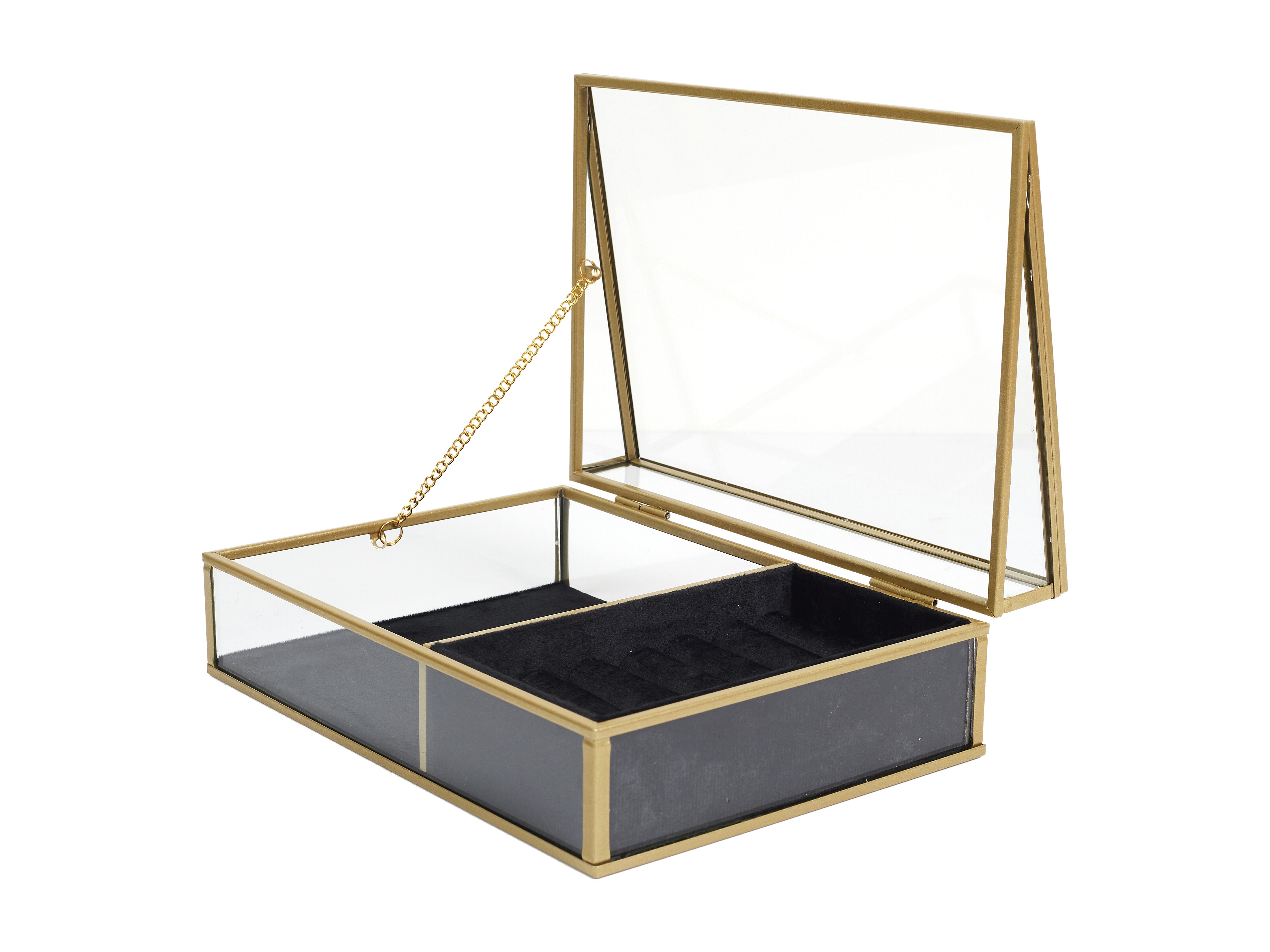 Boite A Bijoux Verre Et Velours Noir Or, Noir, Transparent