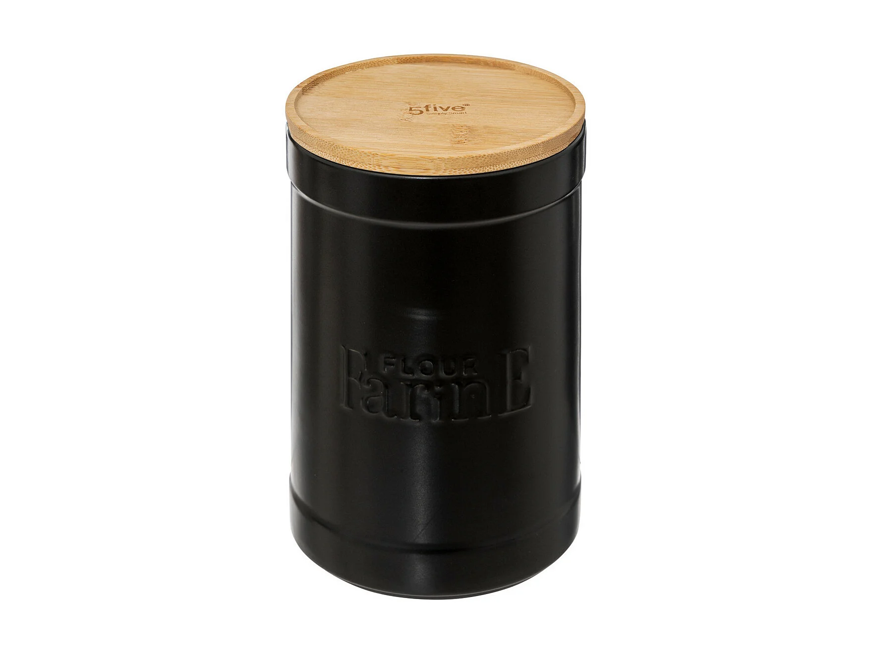 Boîte à farine en céramique Noire et couvercle en Bambou
