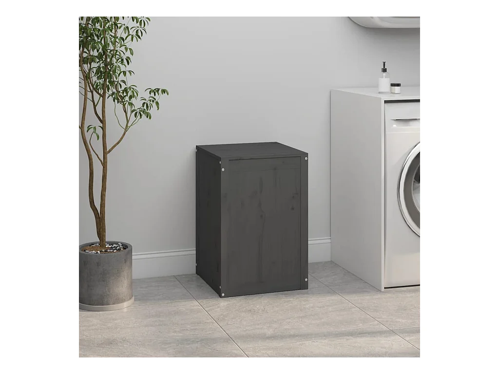 Boîte à linge Gris 44x44x66 cm Bois massif de pin