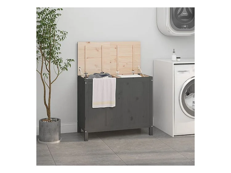 Boîte à linge Gris 88,5x44x76 Bois massif de pin