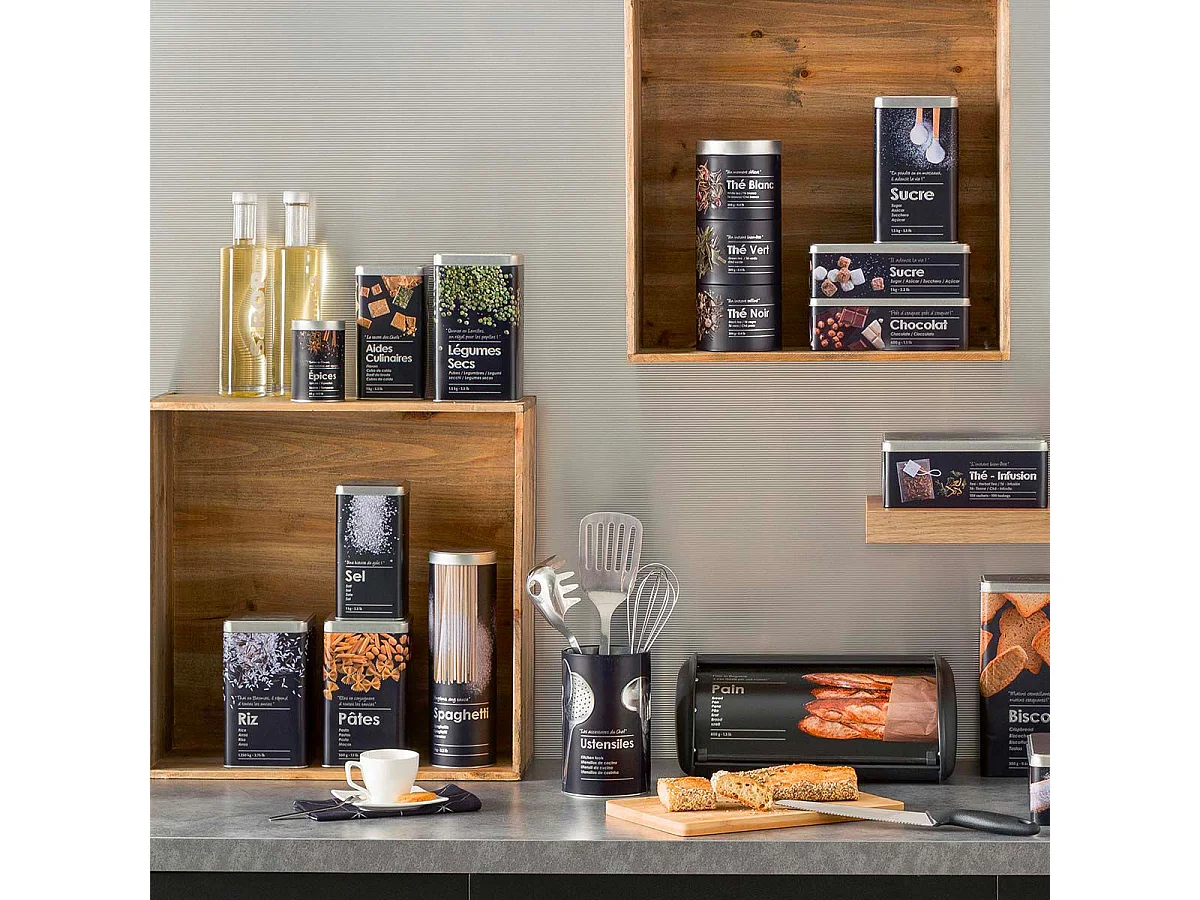Boîte à Pain en Métal Noir Mat et Doré - DEJNA
