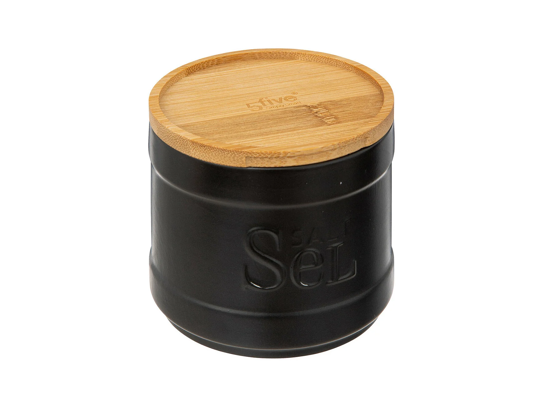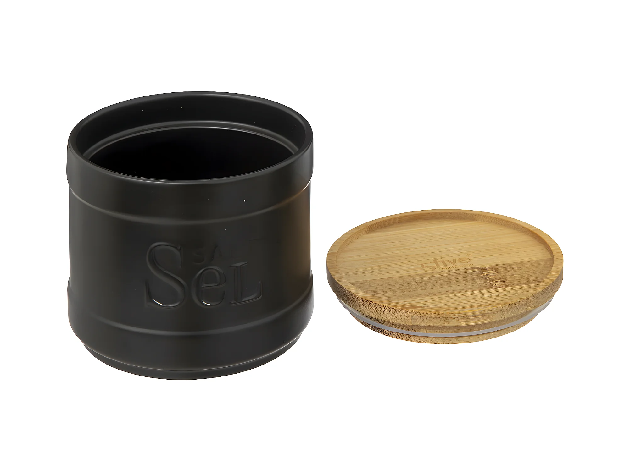Boîte à sel en céramique Noire et couvercle en Bambou