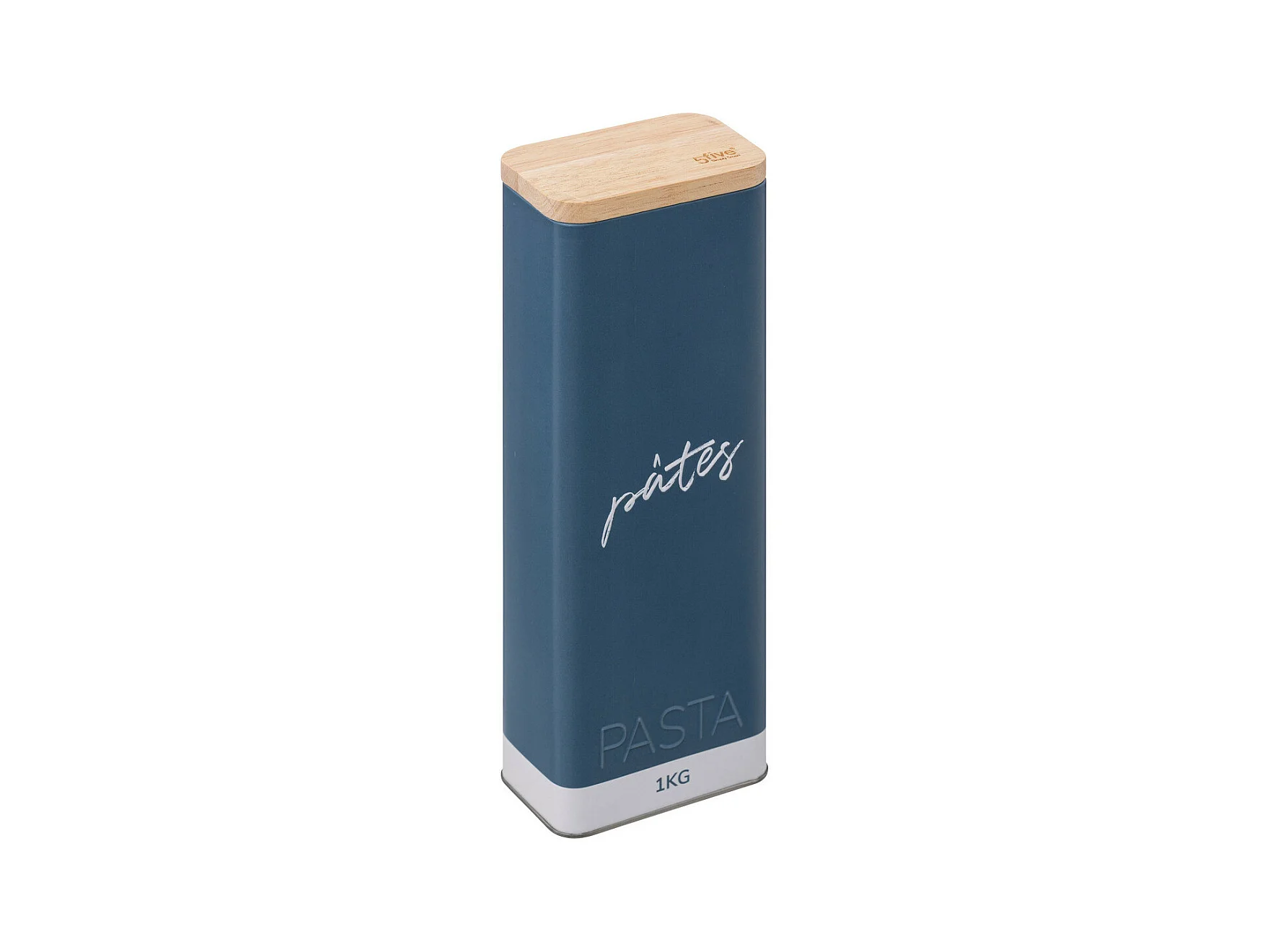 Boîte à pâtes en métal Bleu Navy et couvercle en bois déco Relief Color