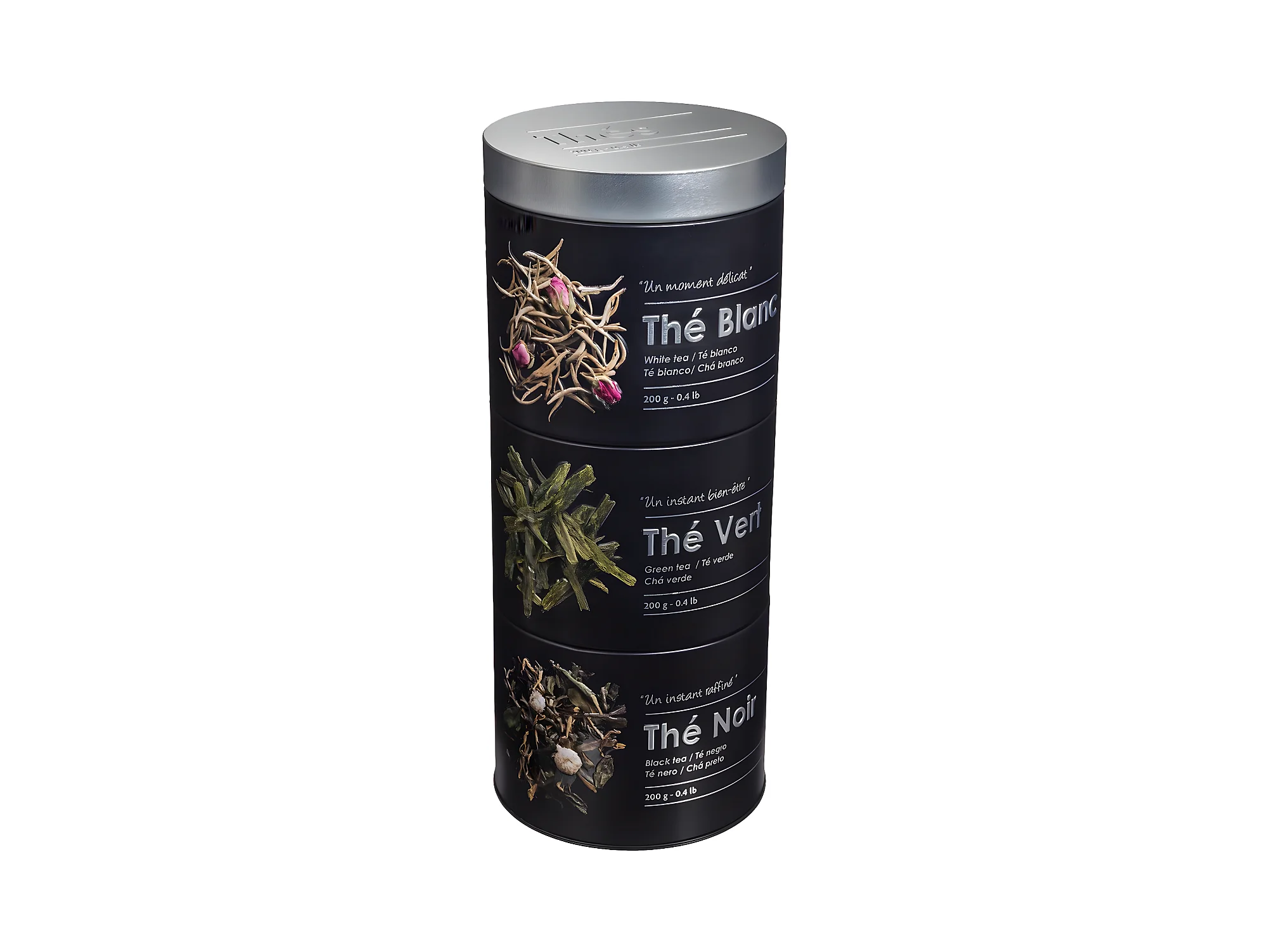 Boîte à Thé 3 Compartiments "Relief II" 26cm Noir