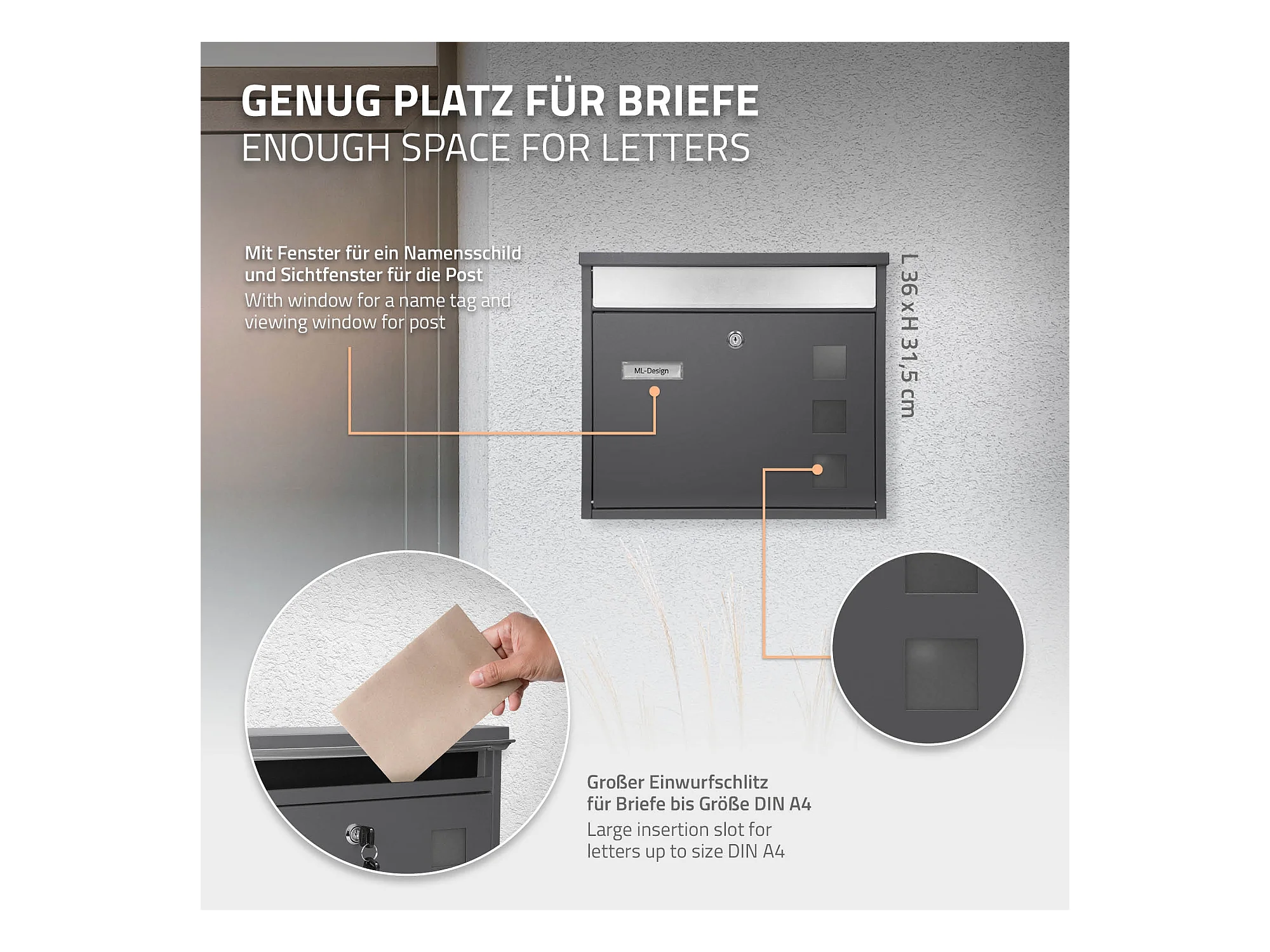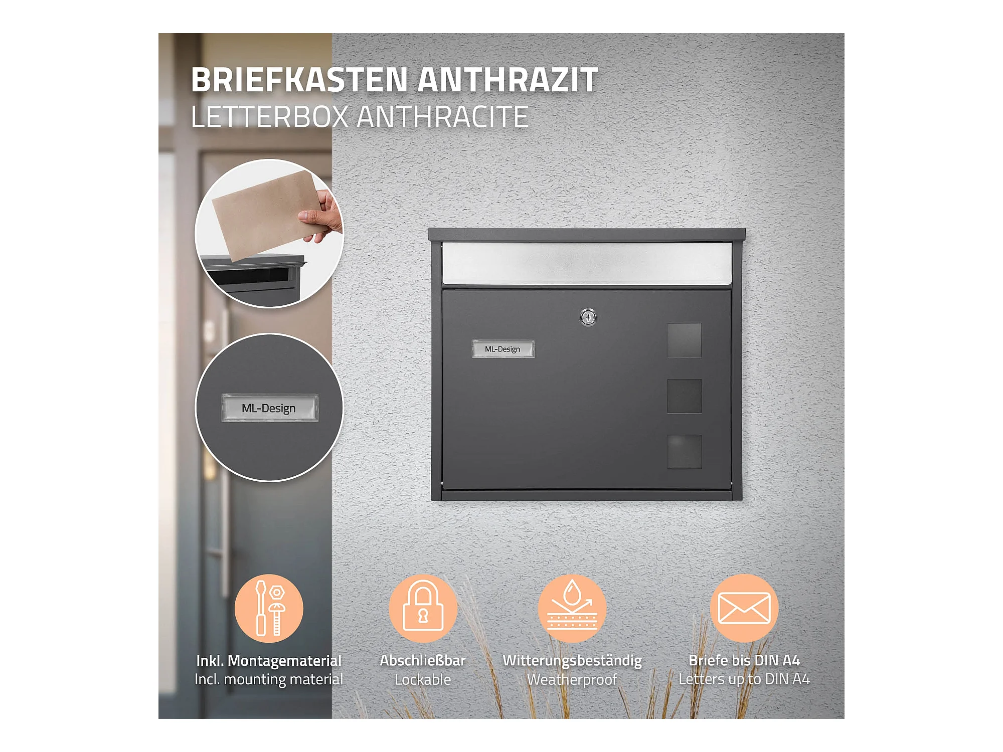 Boîte aux lettre avec plaque acier mailbox sur pied et support anthracite 120 cm