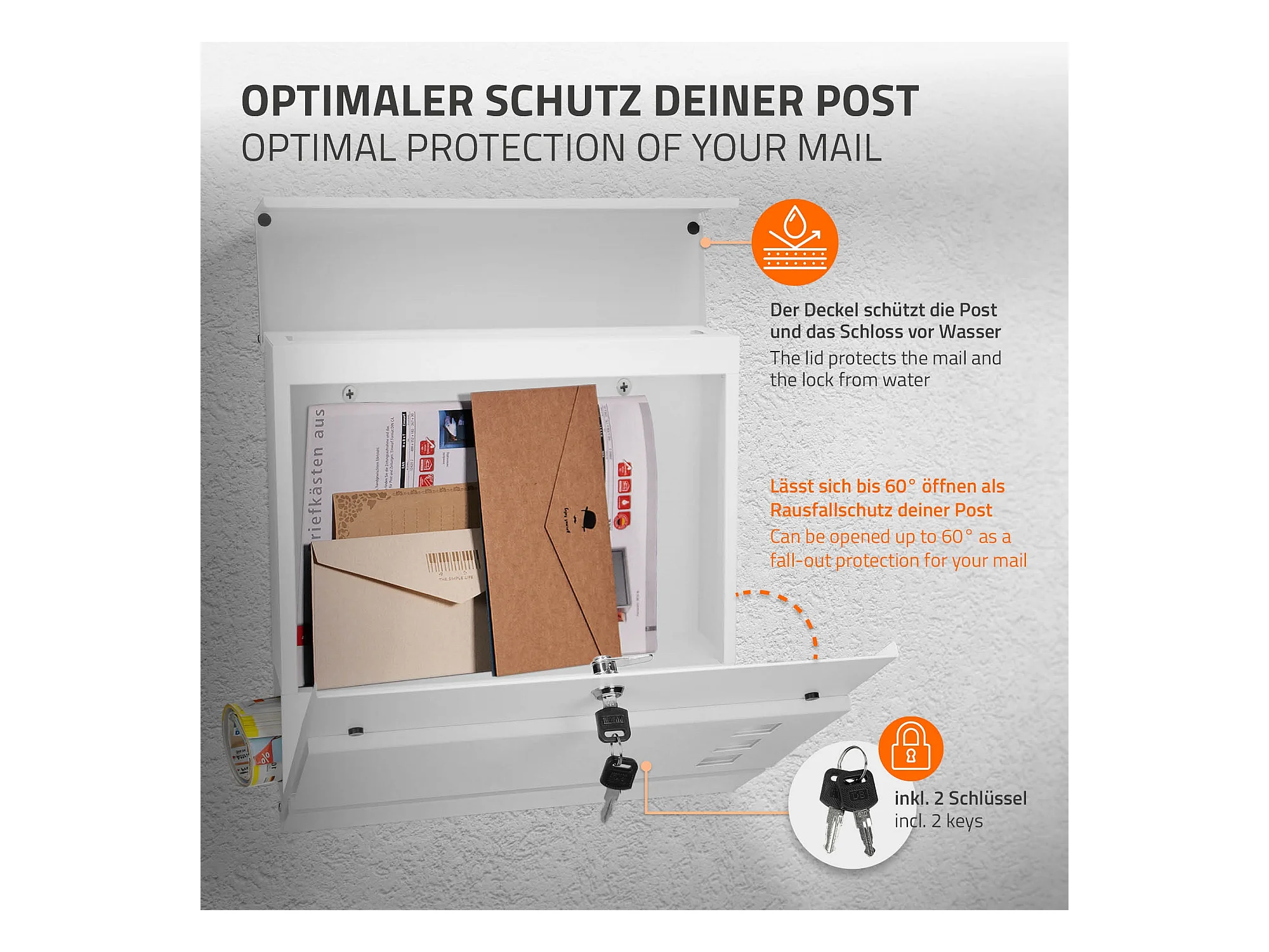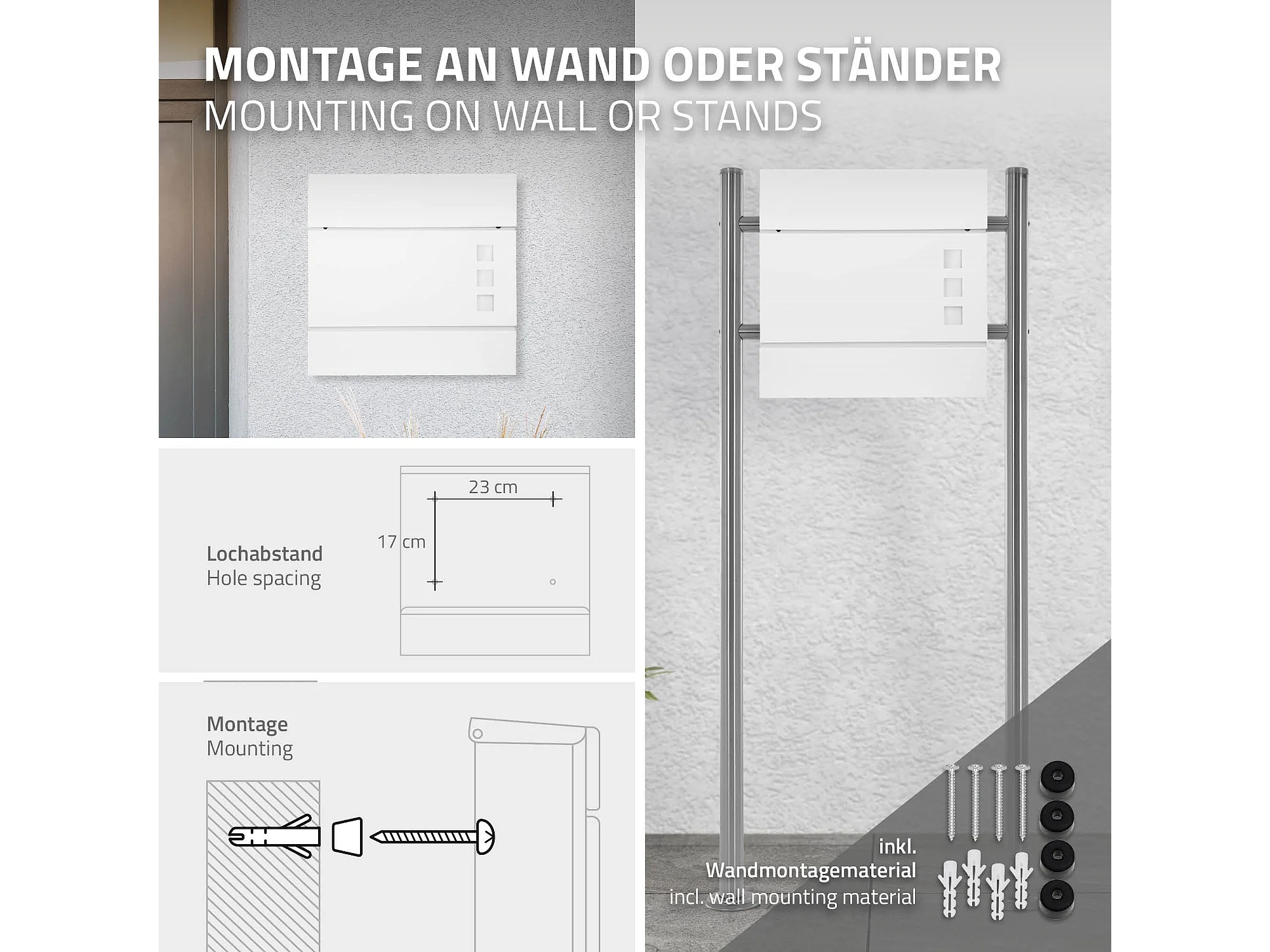 Boîte aux lettres avec support boîte postale blanc moderne avec 2 clés incluses