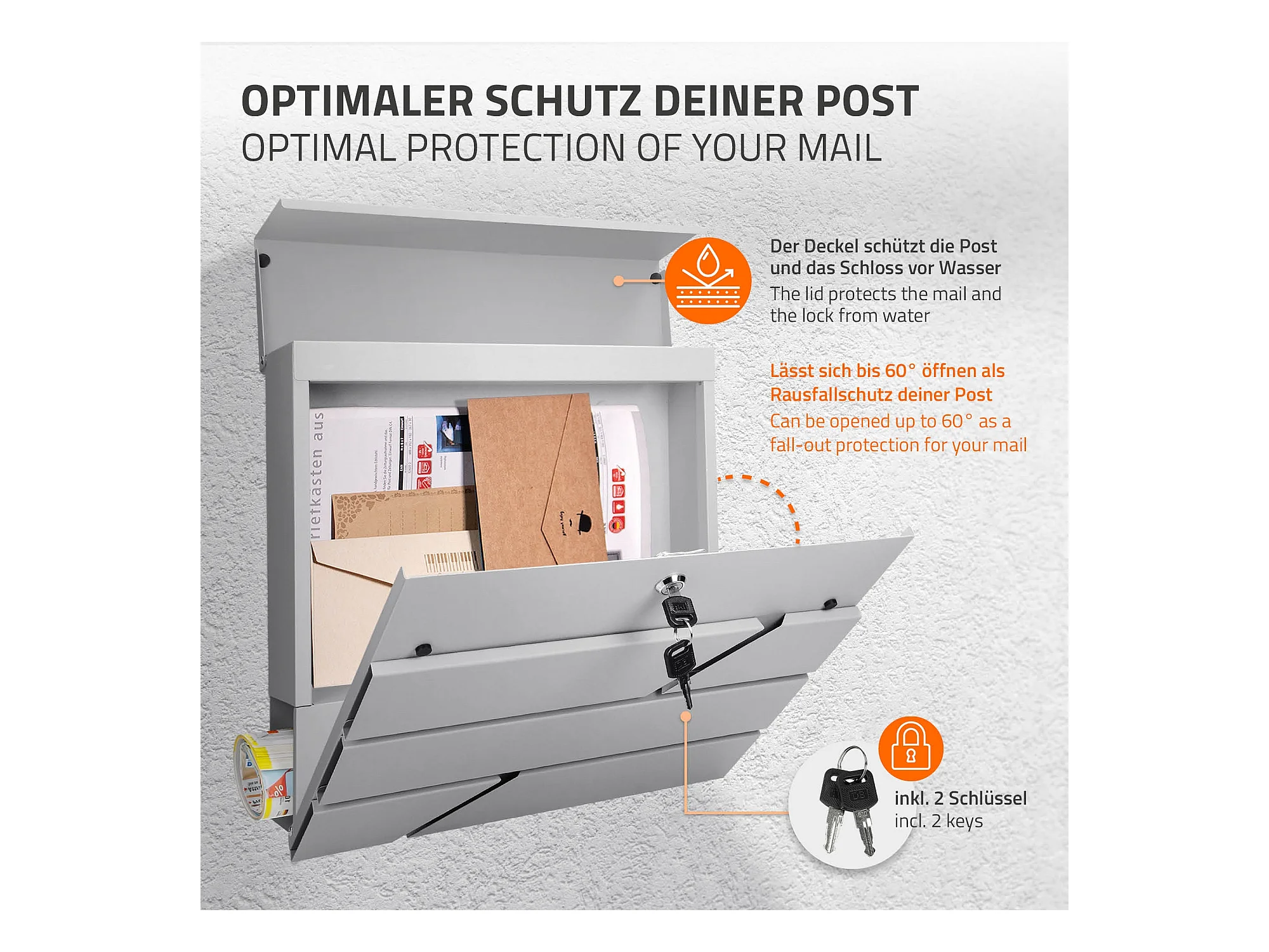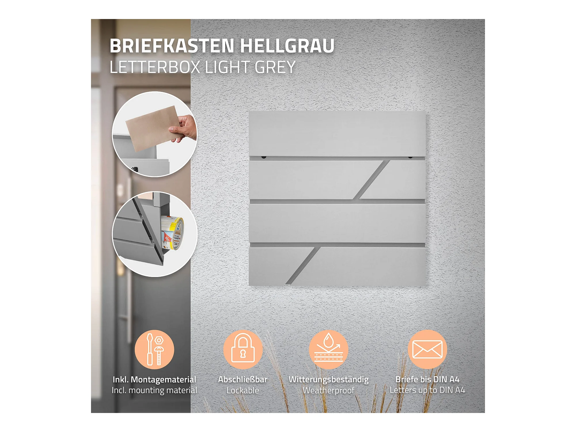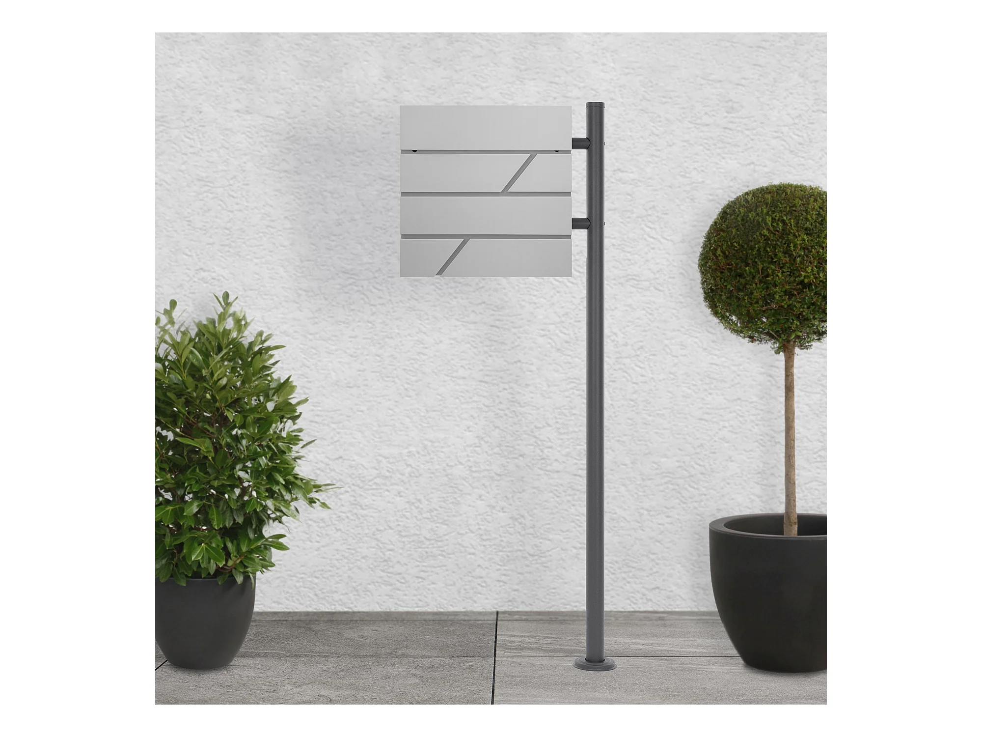 Boîte aux Lettres Gris Clair sur Pied avec Compartiment à Journaux, Pied Indépendant