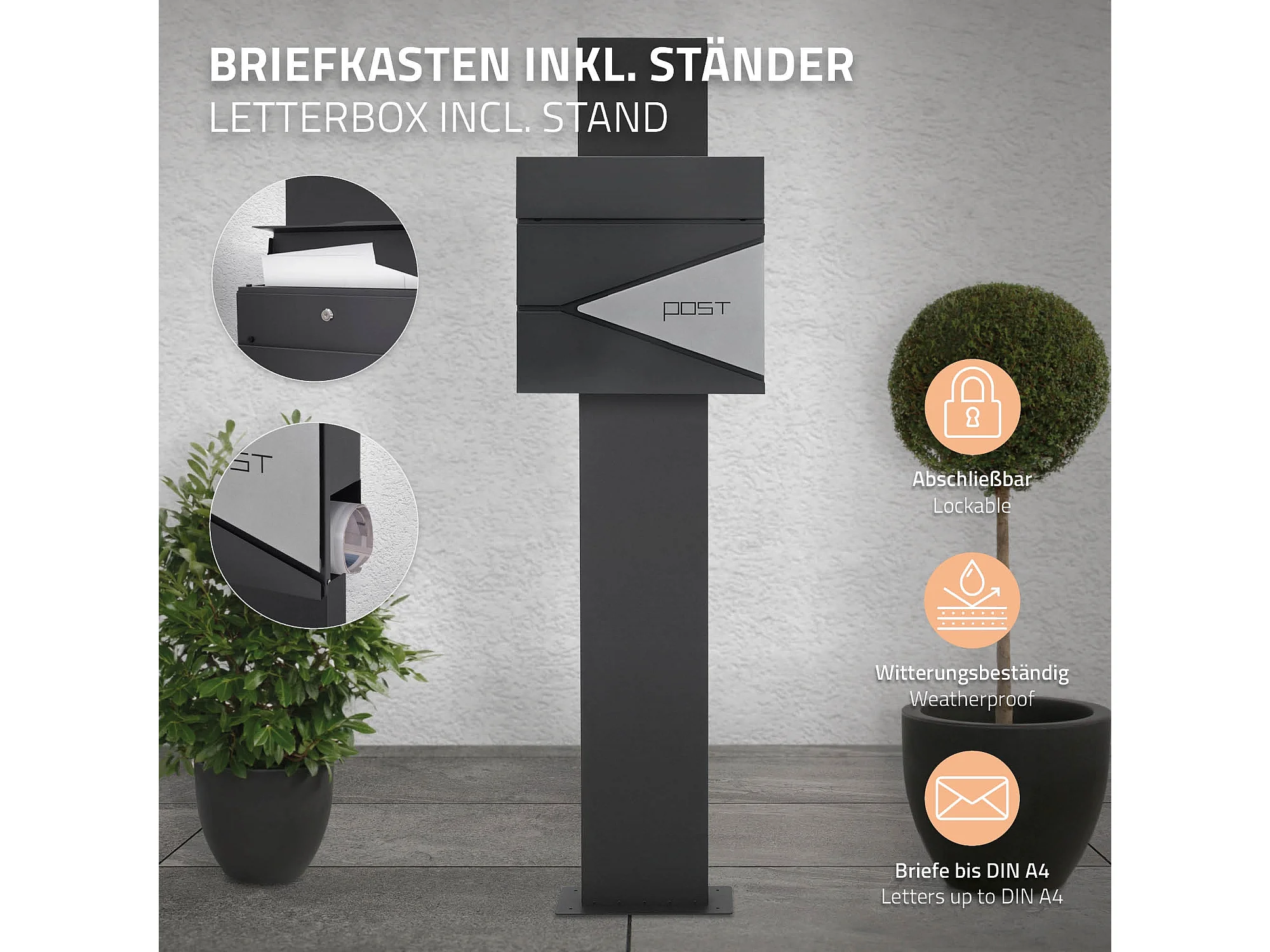 Boîte aux lettres sur pied boîte postale acier anthracite/argent ML-Design