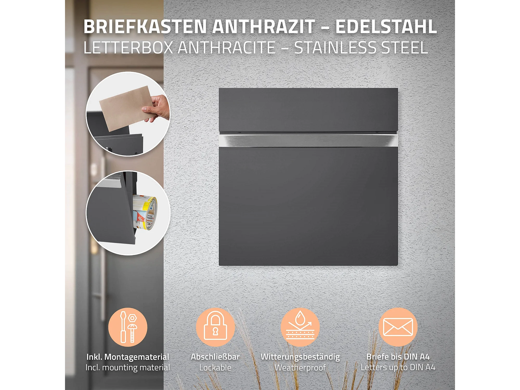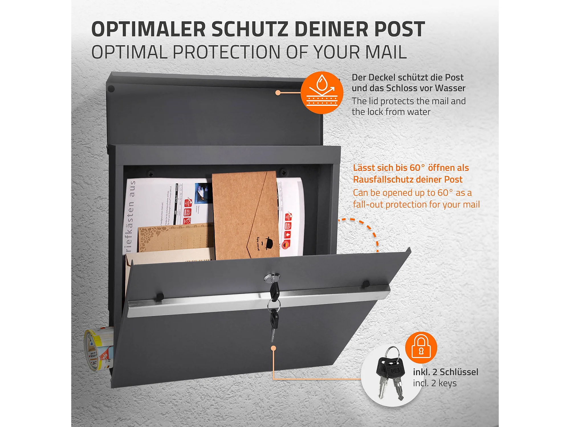 Boîte aux lettres avec support mailbox anthracite moderne avec 2 clés incluses