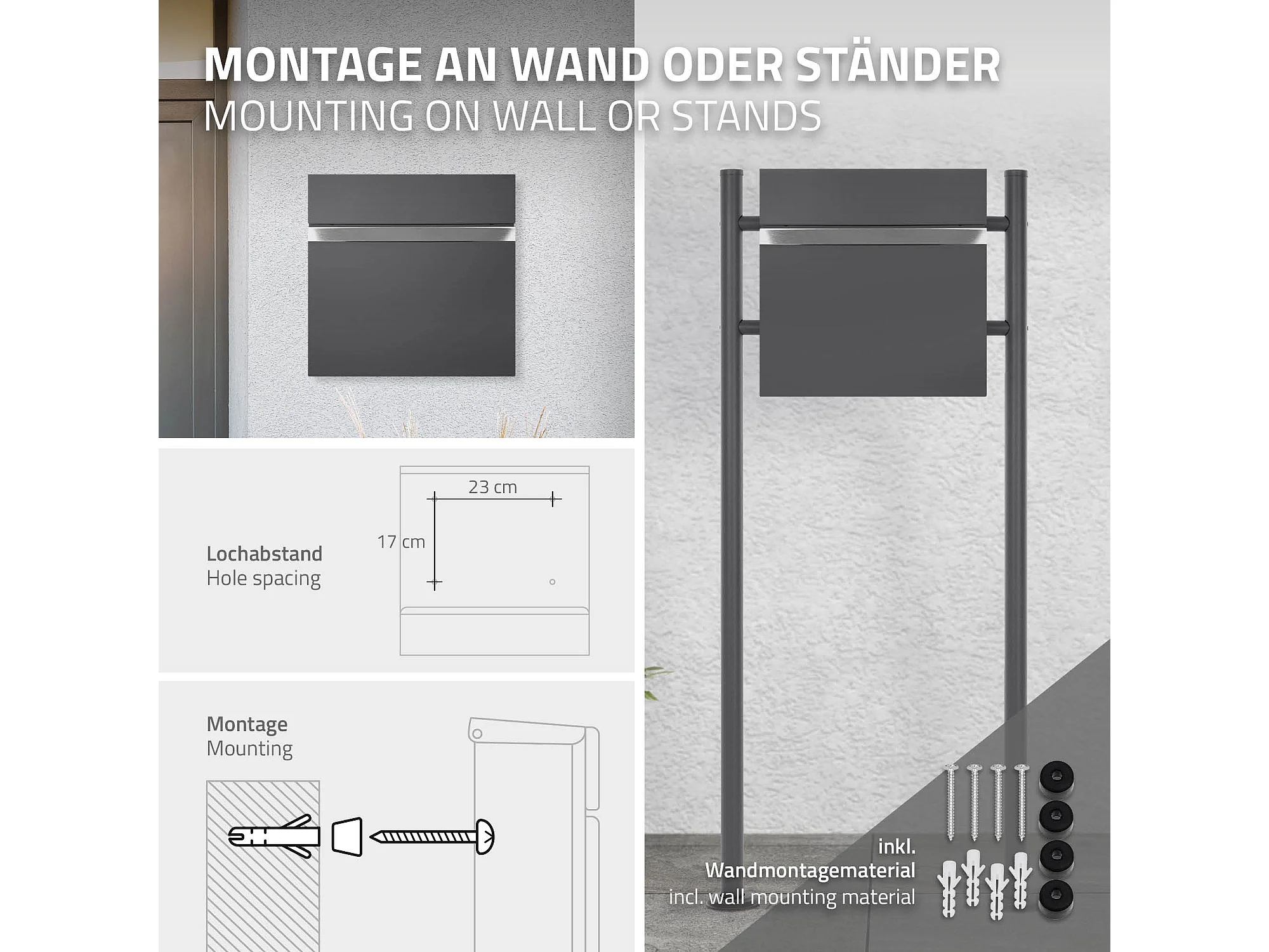 Boîte aux lettres avec support mailbox anthracite/ argent moderne avec 2 clés