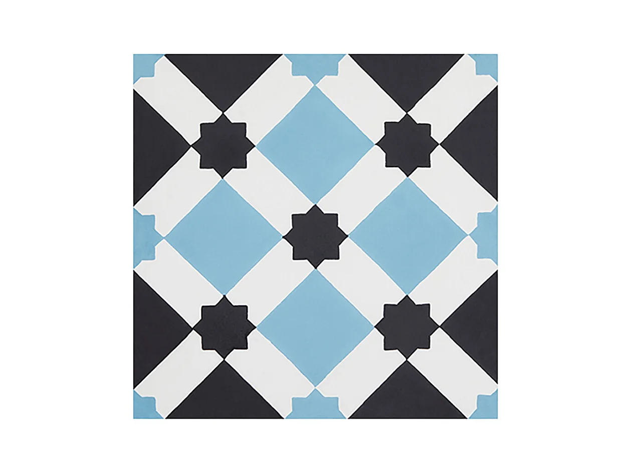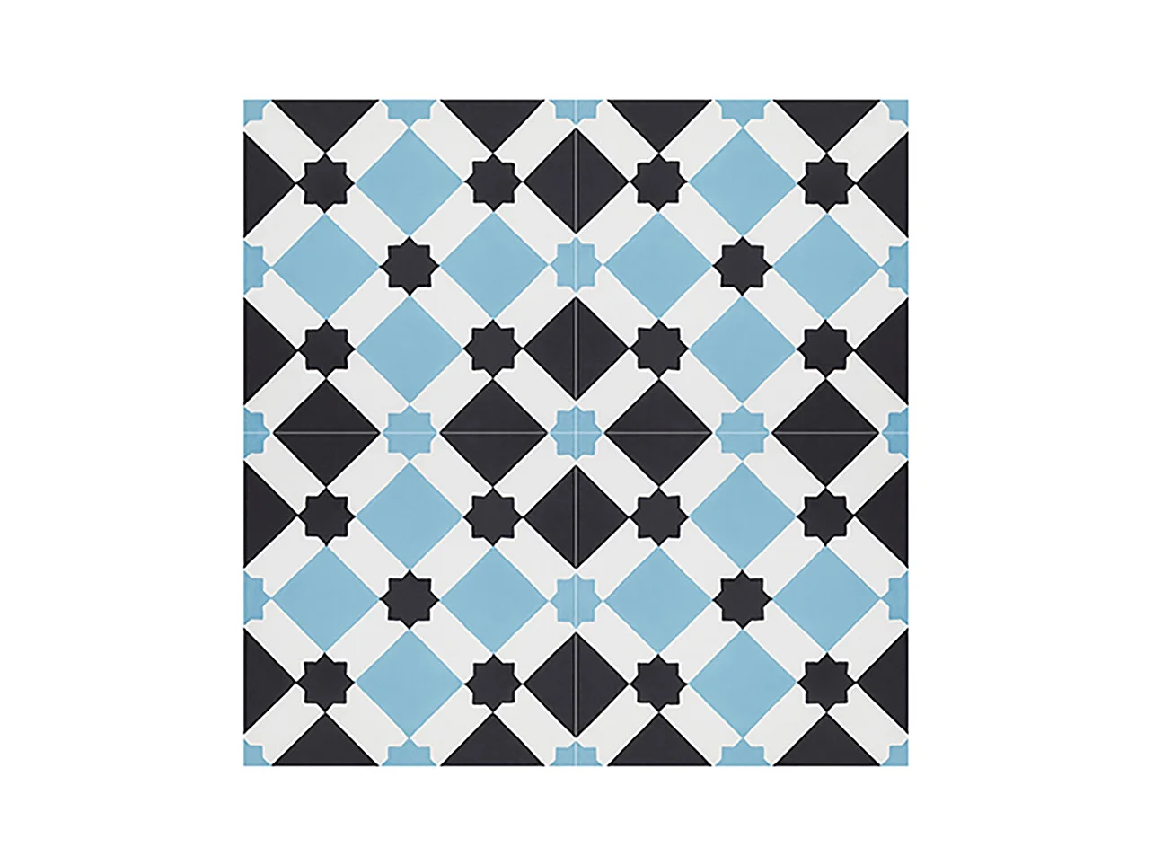 Boite de 24 Carreaux de ciment hydraulique 0,96m2 / Carreaux de ciment artisanaux pour sol et mur coloris bleu - l.20 x L.20 cm