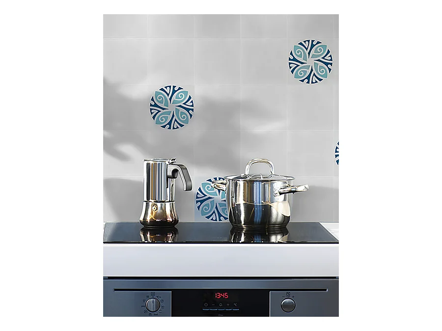 Boite de 24 Carreaux de ciment véritable 0,96m2/ Carreaux de ciment artisanaux coloris Bleu pour sol et mur - l.20 x L.20 cm