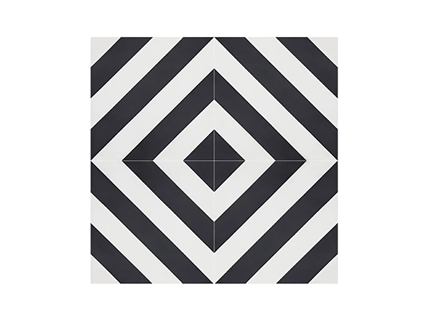 Boite de 24 Carreaux de ciment véritable 0,96m2 / Carreaux de ciment artisanaux coloris noir/blanc pour sol et mur - l.20 x L.20 cm