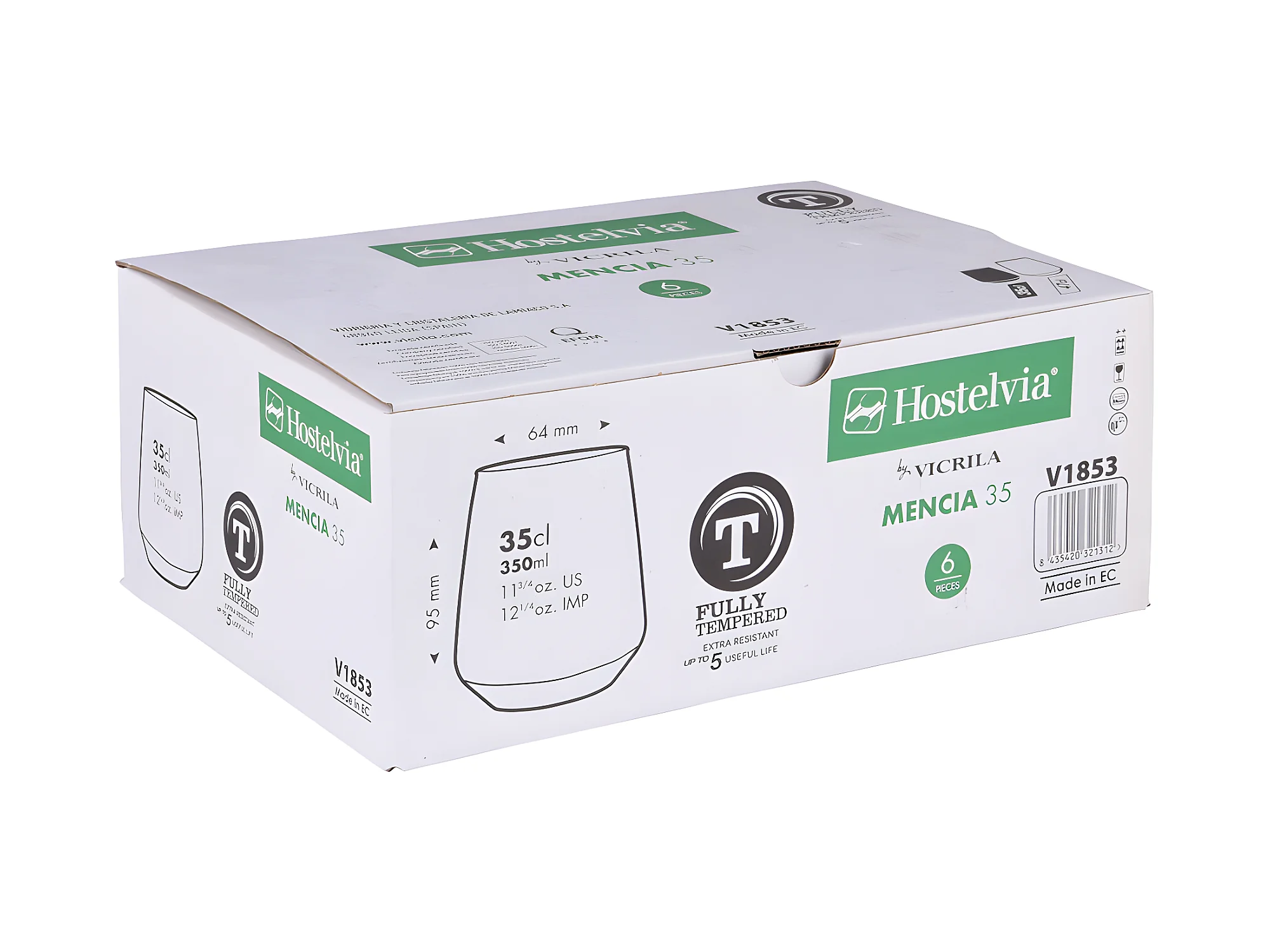 Boîte de 6 gobelets trempés Victoria 35 cl