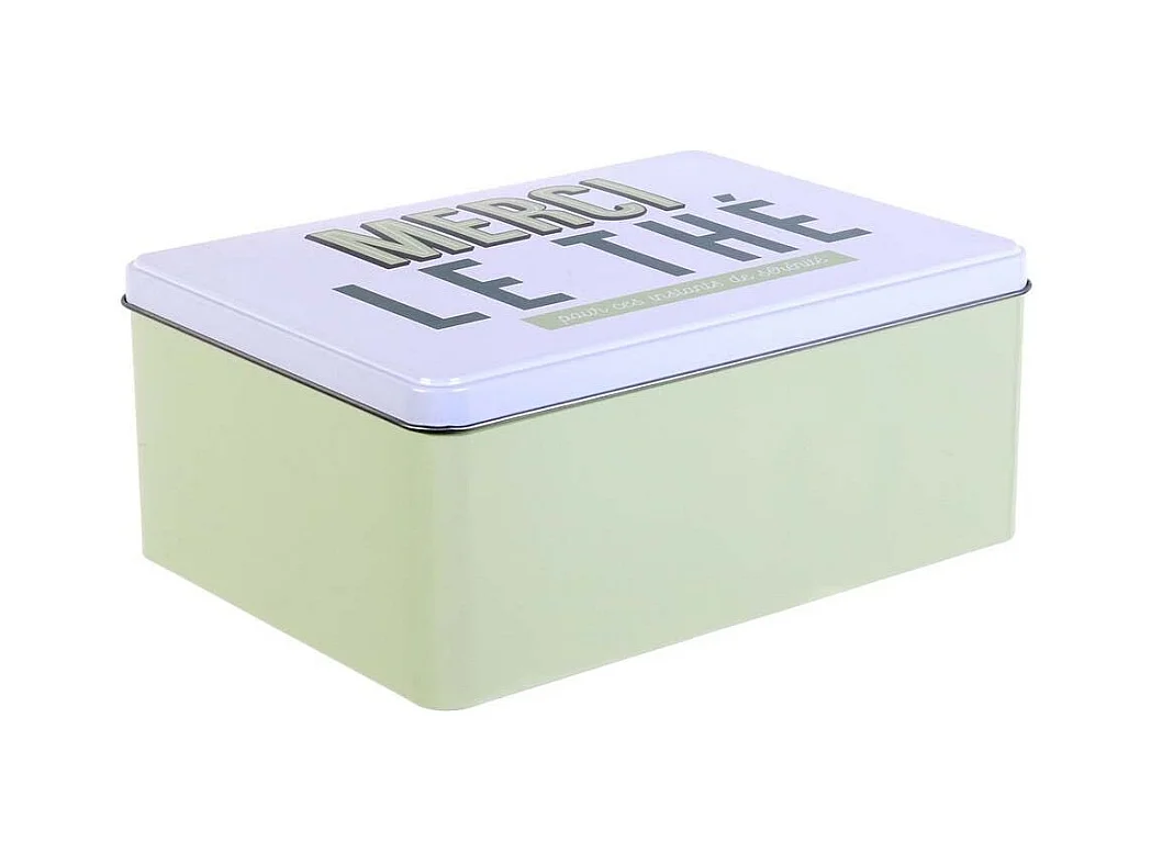 Boite à thé en tinplate "Merci le thé" collection TEA TIME vert