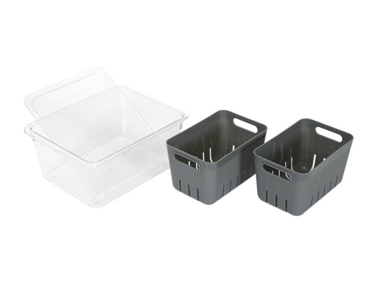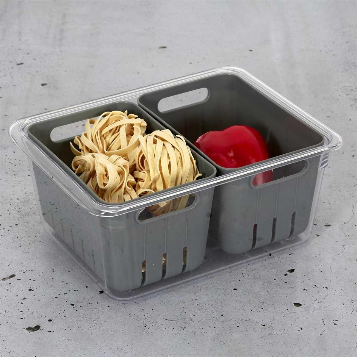 Boite de conservation transparente avec 2 bacs amovibles gris