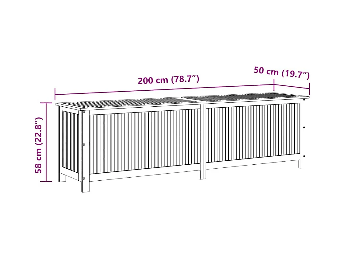 Boîte de rangement de jardin 200x50x58 cm Bois d'acacia solide