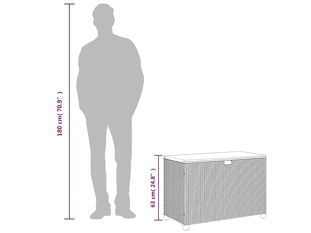 Boîte de rangement de jardin noir résine tressée bois d'acacia
