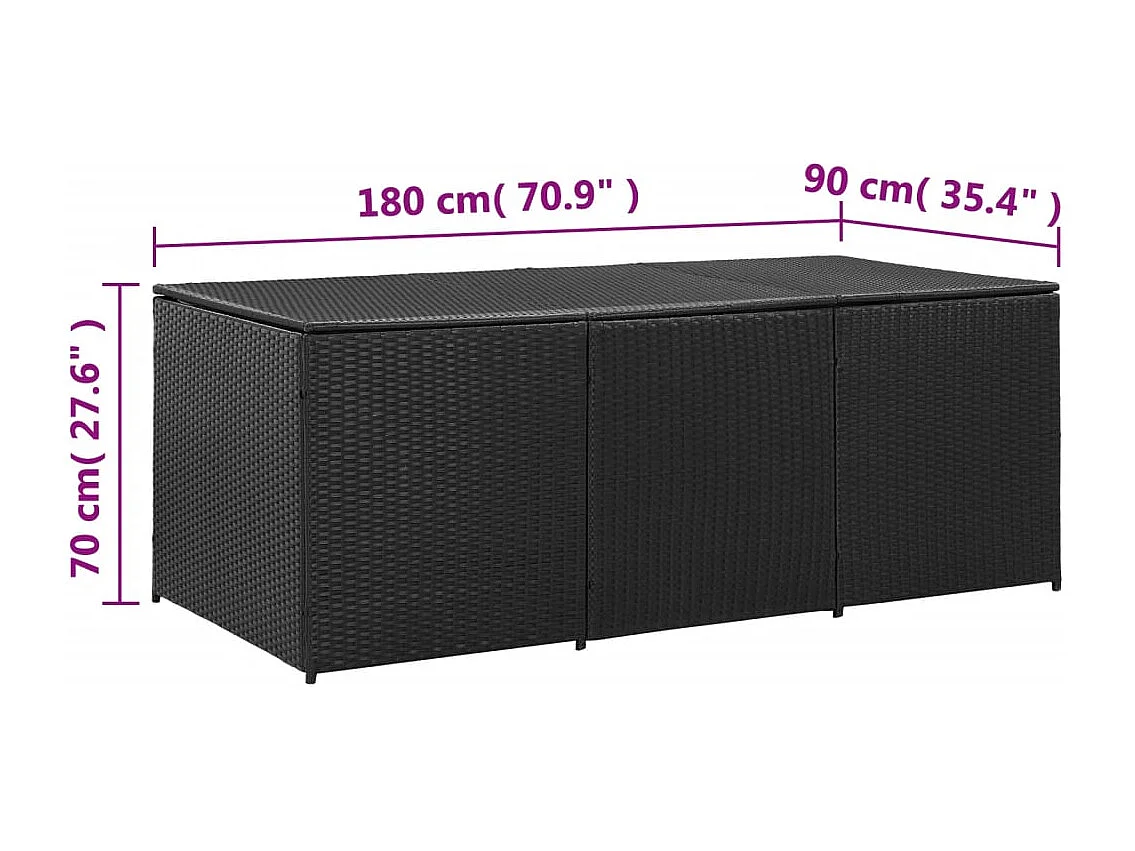 Boîte de rangement de jardin Résine tressée 180x90x70 cm Noir