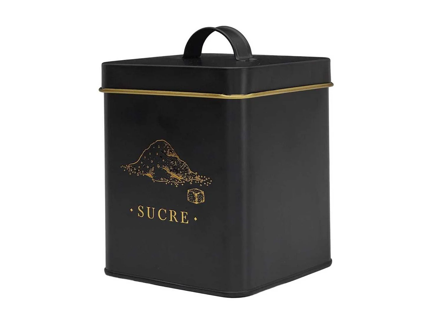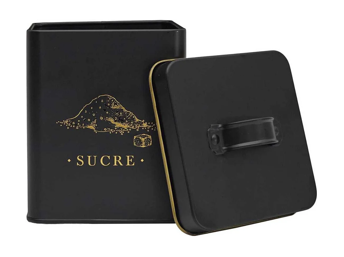 Boîte de rangement en métal noir et doré pour sucre - LUXOR