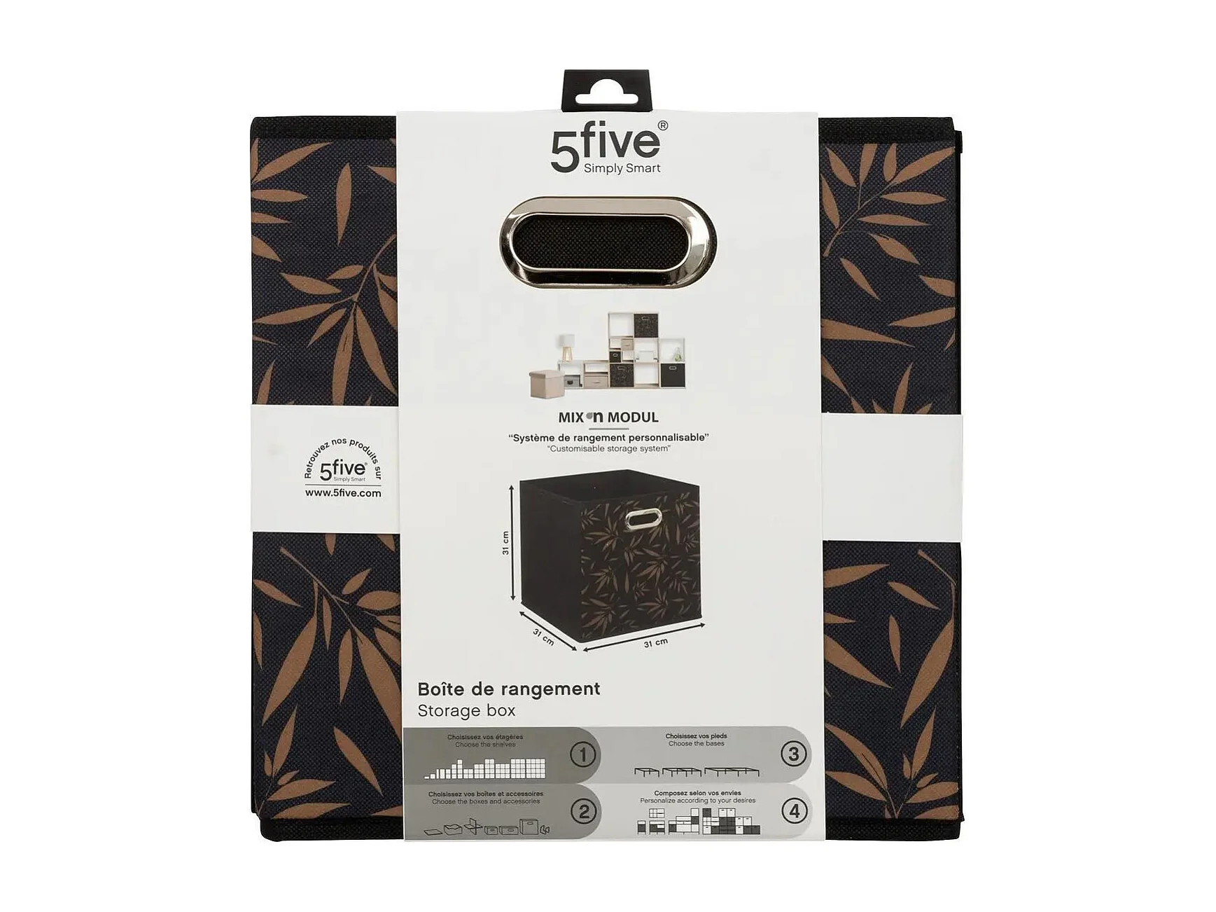 Boîte de rangement Noir avec déco 31 x 31 x 31 cm