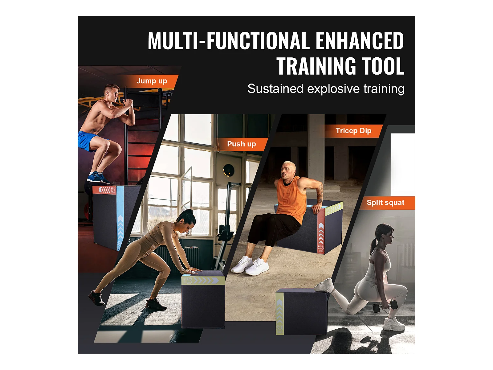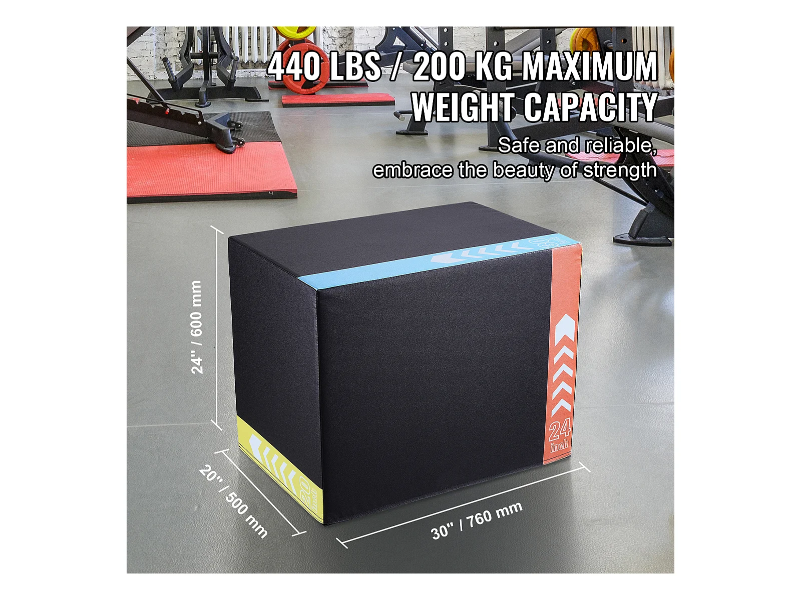 Boîte de Saut Pliométrique SucceBuy, Boîte de Pliométrie 3-en-1, 76/60/50 cm, Charge 200 kg