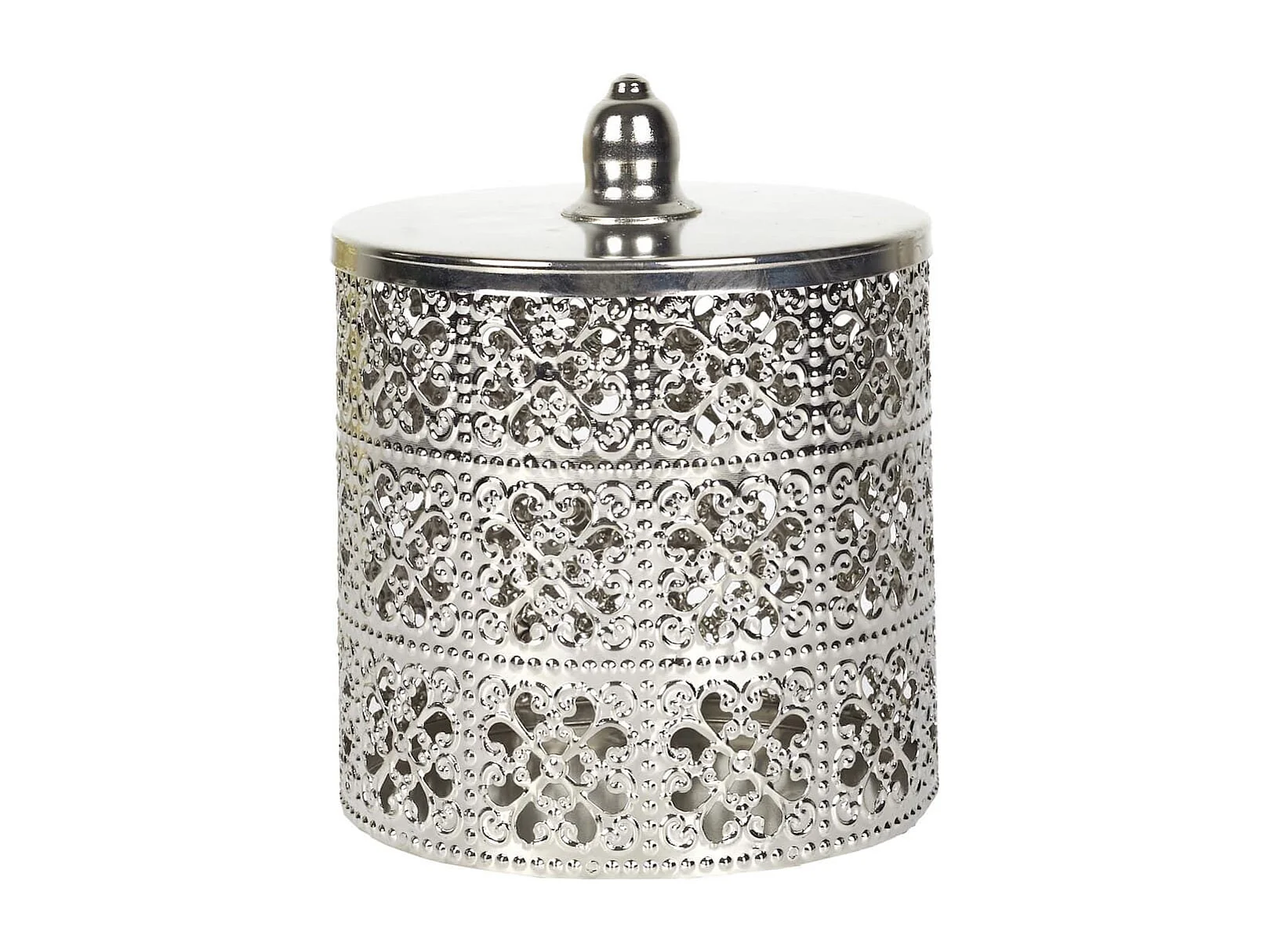 Boîte décorative en fer argenté avec couvercle style marocain (H14,8 cm)