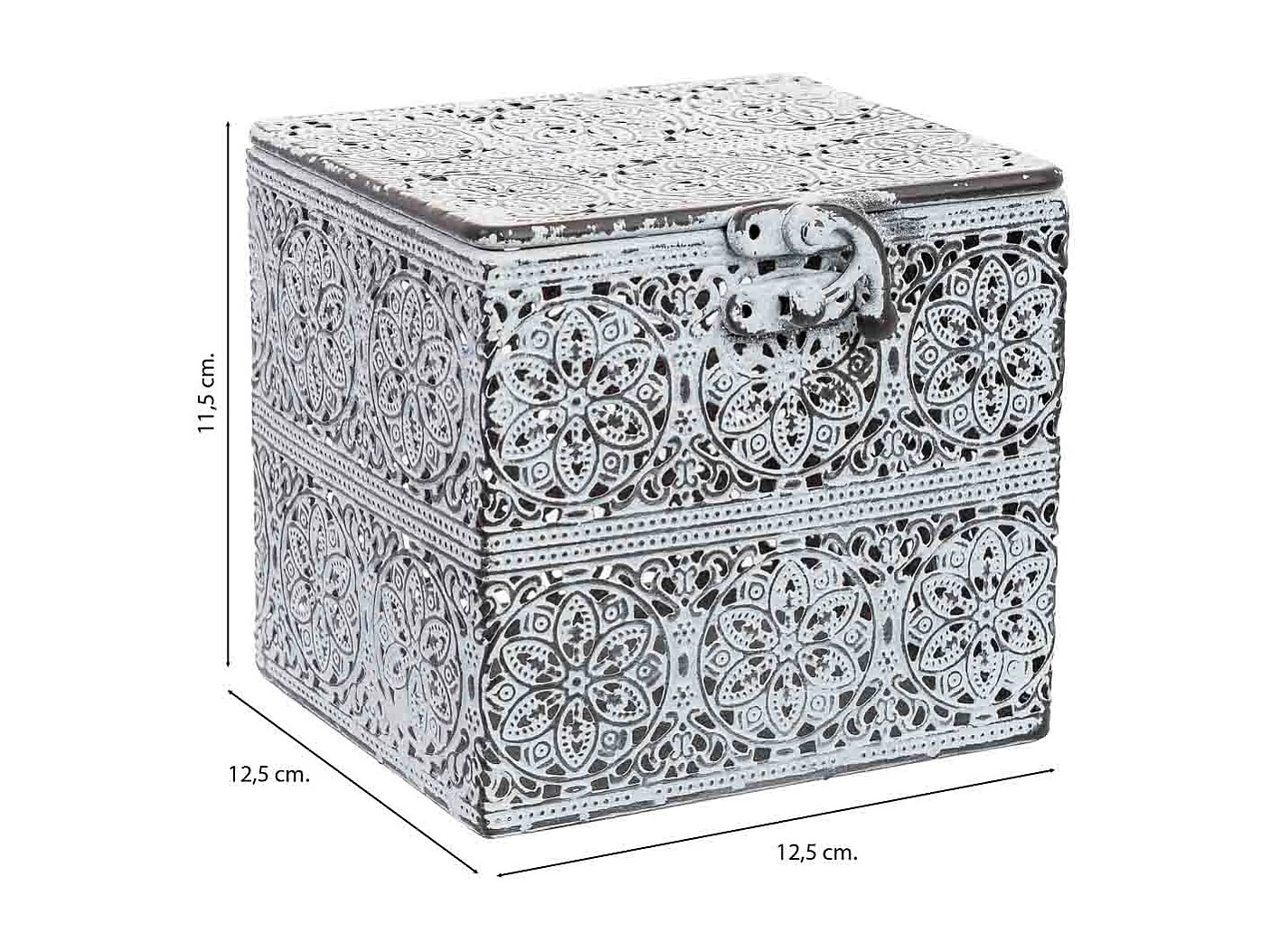 Boîte en métal blanc 12.5x12.5x11.5h cm (hauteur)